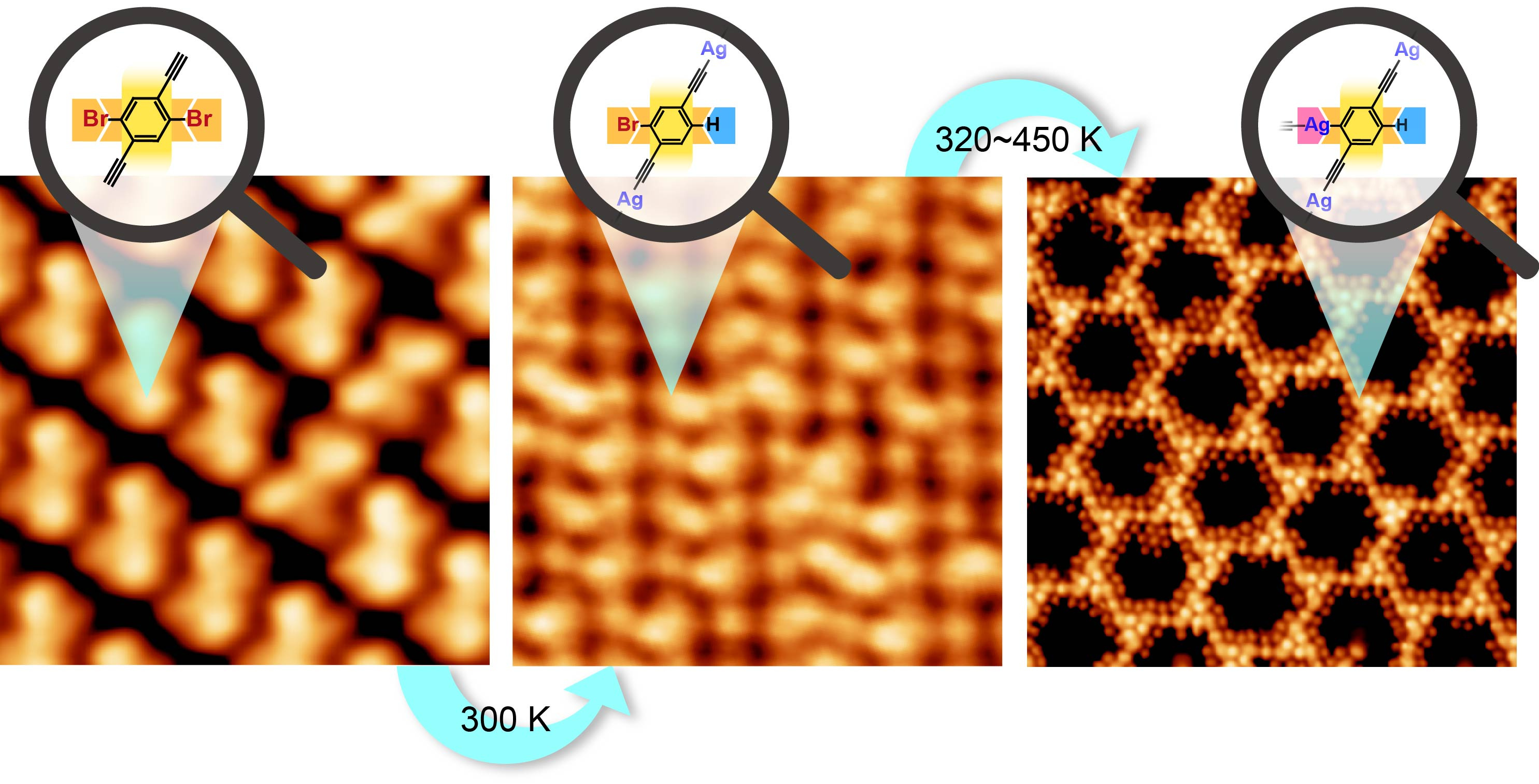 To learn more about this work, please check out our article “Stepwise On-Surface Dissymmetric Reaction to Construct Binodal Organometallic Network” published in Nature Communications (https://doi.org/10.1038/s41467-019-10522-4).