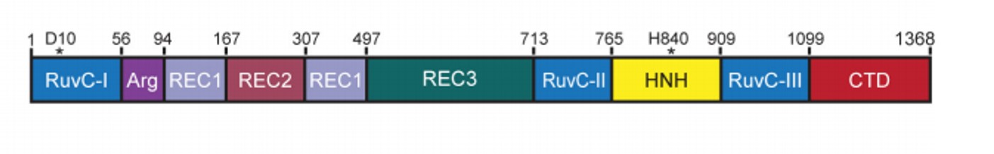 A recent paper from Jennifer Doudna and colleagues, published in Nature, provides important insights into how Cas9 protein domains determine the on-target activity of the enzyme. The researchers focused on two of these domains, the catalytic nuclease HNH and the non-catalytic domain REC3 (Figure 1), and used Förster resonance energy transfer (FRET) assays to observe the molecular dynamics of the two domains of SpCas9-HF1 and eSpCas9(1.1) during interaction with on-target or off-target DNA strands. They first found that the conformational changes that allow docking of the HNH nuclease domain on DNA are highly sensitive to mismatches. Next, experiments in which deletion of the REC3 domain from Cas9 variants decreased cleavage rates by ~1,000 fold suggested that this domain is important for the catalytic activity of HNH. Additional insights into the dynamics of a third domain, REC2, led the authors to propose a model in which REC3 binding to DNA/RNA duplexes leads to a conformational change in REC2 which then enables the HNH nuclease activity.