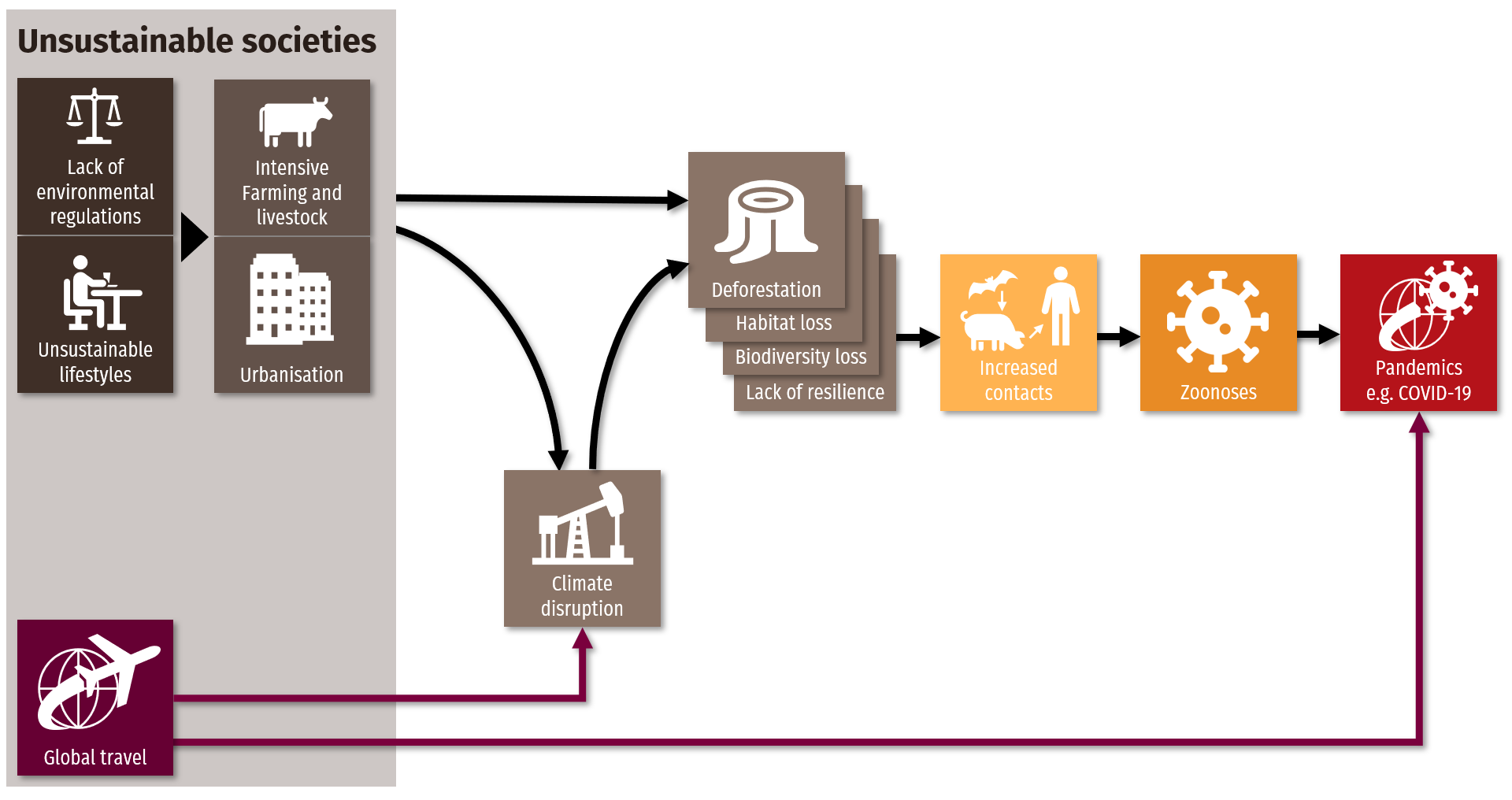 In short, zoonotic pandemics are just another manifestation of the negative impact we are having on our planet, with both biodiversity degradation and climate disruption.