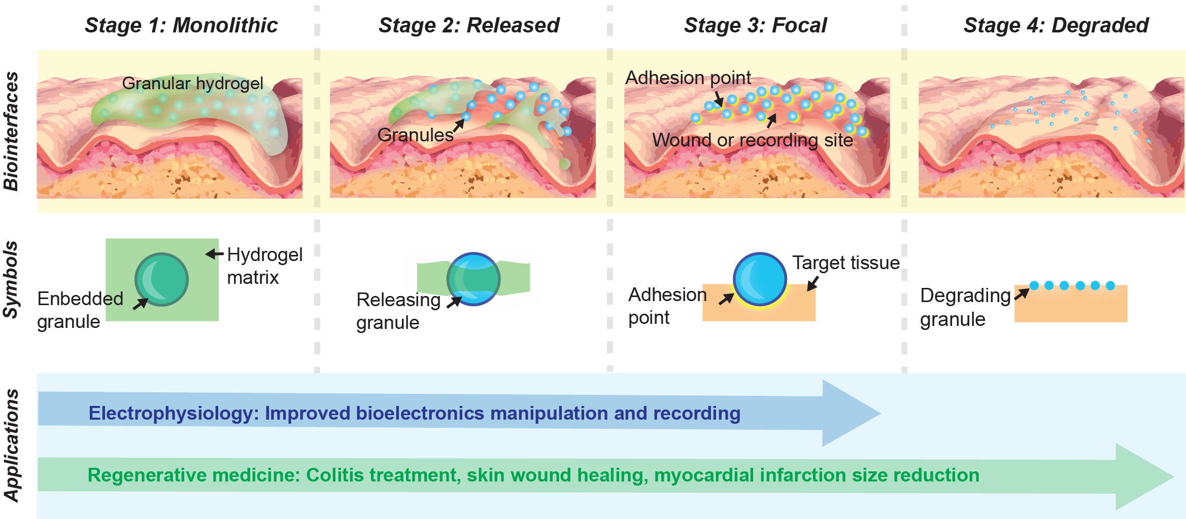 Figure 1| Granule-releasing hydrogel based evolving biointerfaces.