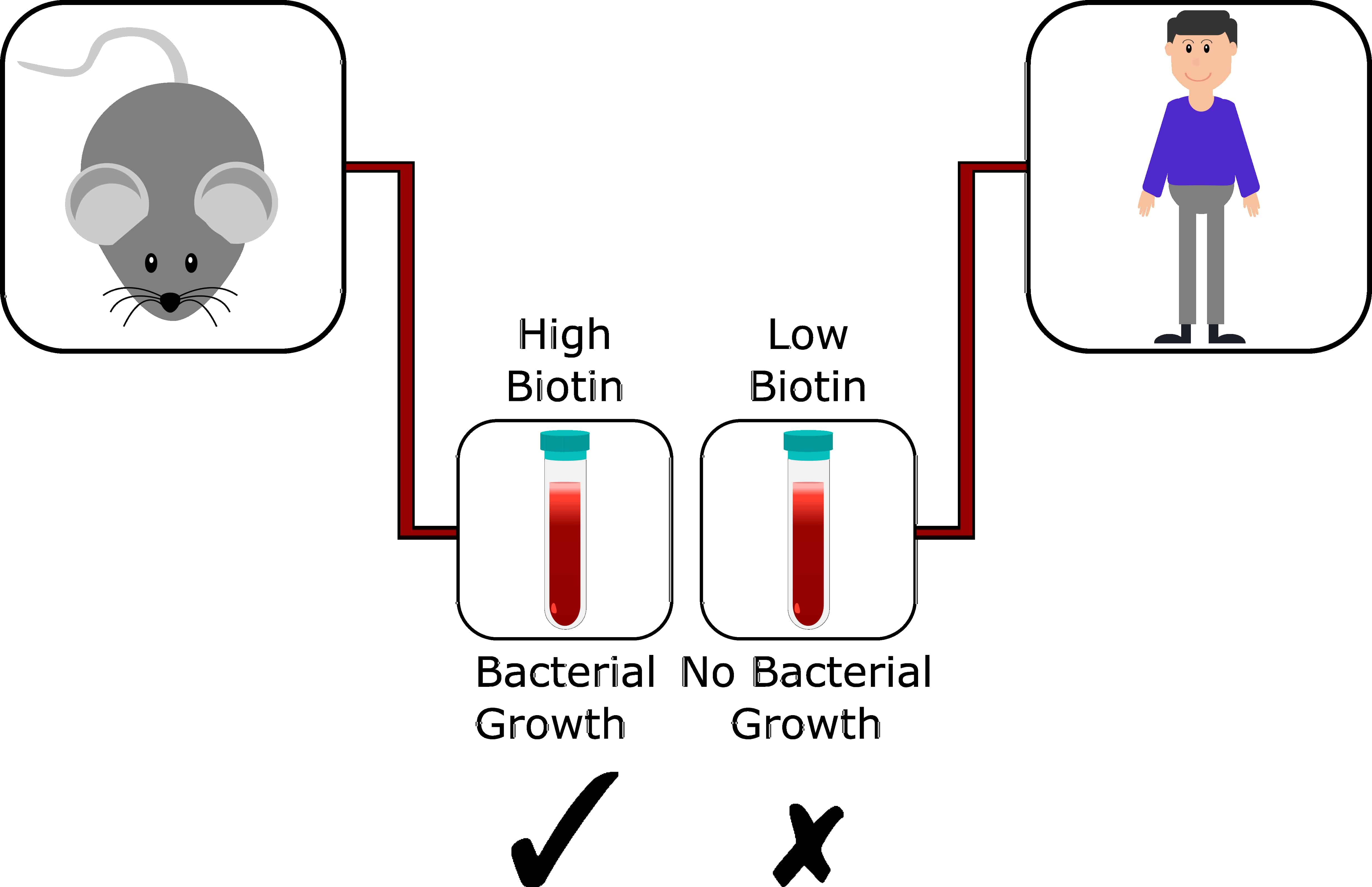 Biotin biosynthesis has been overlooked as a target because of the lack of predictive in vitro and in vivo conditions in antimicrobial lead testing. Mouse models for infectious disease are often regarded as a surrogate for human infection. Despite the widespread use of mouse infection models in preclinical testing, often researchers perform tests without careful consideration of the differences to the human environment. It is important to recognize that there are a class of targets that may not work in mice but are effective in humans. With the surge in antibiotic resistance, it is critical to uncover this class of overlooked targets. By mimicking biotin levels to those found in humans, this work provides insight into how mouse models can be adapted to uncover these new targets. With future research efforts following the same principles, it may be possible to uncover a wide range of novel antimicrobial targets.