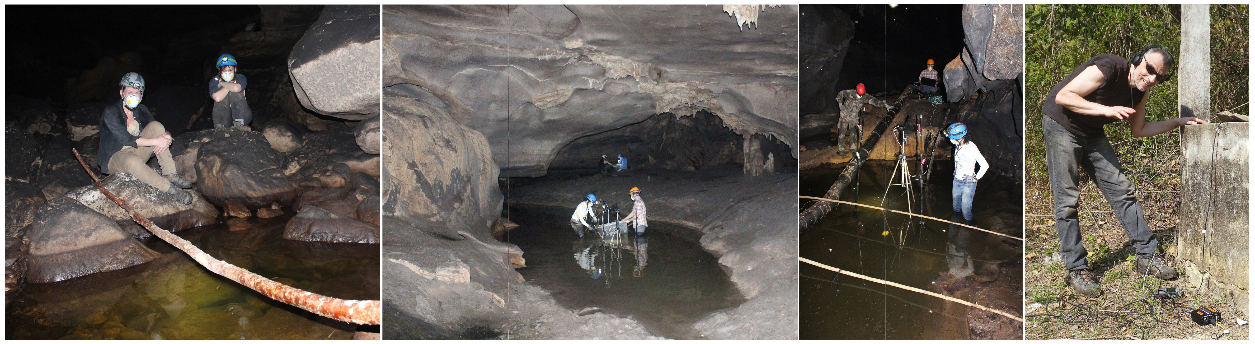 Thanks to the hard work of true field passionate people from the Rétaux lab and co-workers (figure 3), we achieved our ambitious goal of recording blind cavefish with sophisticated acoustic set-ups in six Mexican caves. This challenging field work in the dark, sticky mud, bat-guano and sometimes with rough climbing or deep pits (figure 2), carrying electronic equipment, was rewarded by audio recordings validating the sonic nature of wild Astyanax.