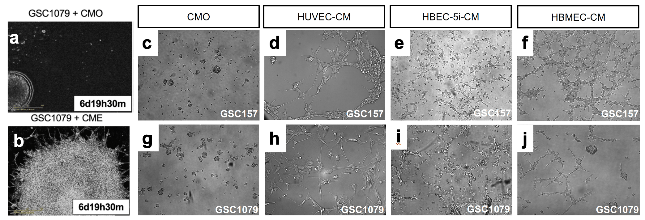 First, we observed that, indeed, GSCs implanted into brains of mice form tumours in which cells proximal to blood vessels seem to look different and acquire spindles. When we co-cultured proneural GSCs with explants from mouse aortae we observed that these cells migrated toward and aligned themselves with endothelial cells of newly formed blood vessels, as if they received some instructive signals. To find out what kind of signals endothelial cells may send to GSCs, the latter were grown in stem cell preserving neurosphere cultures in the presence of endothelial cells or their derived factors contained in purified conditioned media. Remarkably, contact with this material dramatically changed the behaviour of proneural GSC. In the presence of endothelial factors, proneural cells separated from their multicellular spheres (Fig.1), attached to the dish and assumed motile and elongated, mesenchymal appearance. They also lost the expression of proneural GSC markers (SOX2, activated NOTCH) and expressed mesenchymal markers (CD44, VIM).