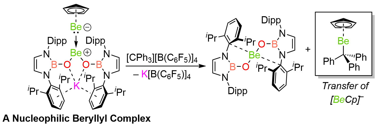 Our initial foray into beryllium chemistry was a collaboration with Dr Magnus Buchner at Philipps-Universität Marburg. For this work, we prepared a compound with an unsupported Be–Al bond via reaction of beryllocene (BeCp2) with a potassium aluminyl reagent, thereby yielding a complex with an [X2Al–BeCp] moiety. Considering the similar Pauling electronegativity of aluminium (1.61) and beryllium (1.57), this reaction could be thought of as a one electron oxidation of aluminium(I) and one electron reduction of beryllium(II). Thus, we anticipated that this hetero-metallic bonding linkage might electronically resemble the long-sought homo-metallic Be–Be bond. And indeed, an analysis of the electronic structure of this compound brought to mind diberyllocene (CpBeBeCp). Over the prior three decades, various researchers had come to the same conclusion: that diberyllocene should be stable. However, the first attempts to prepare this complex in a laboratory date back to the 1970s. Given our success preparing “half” of diberyllocene (i.e., the “neutral” [BeCp] fragment), we saw the full dimetallocene as our next synthetic target.