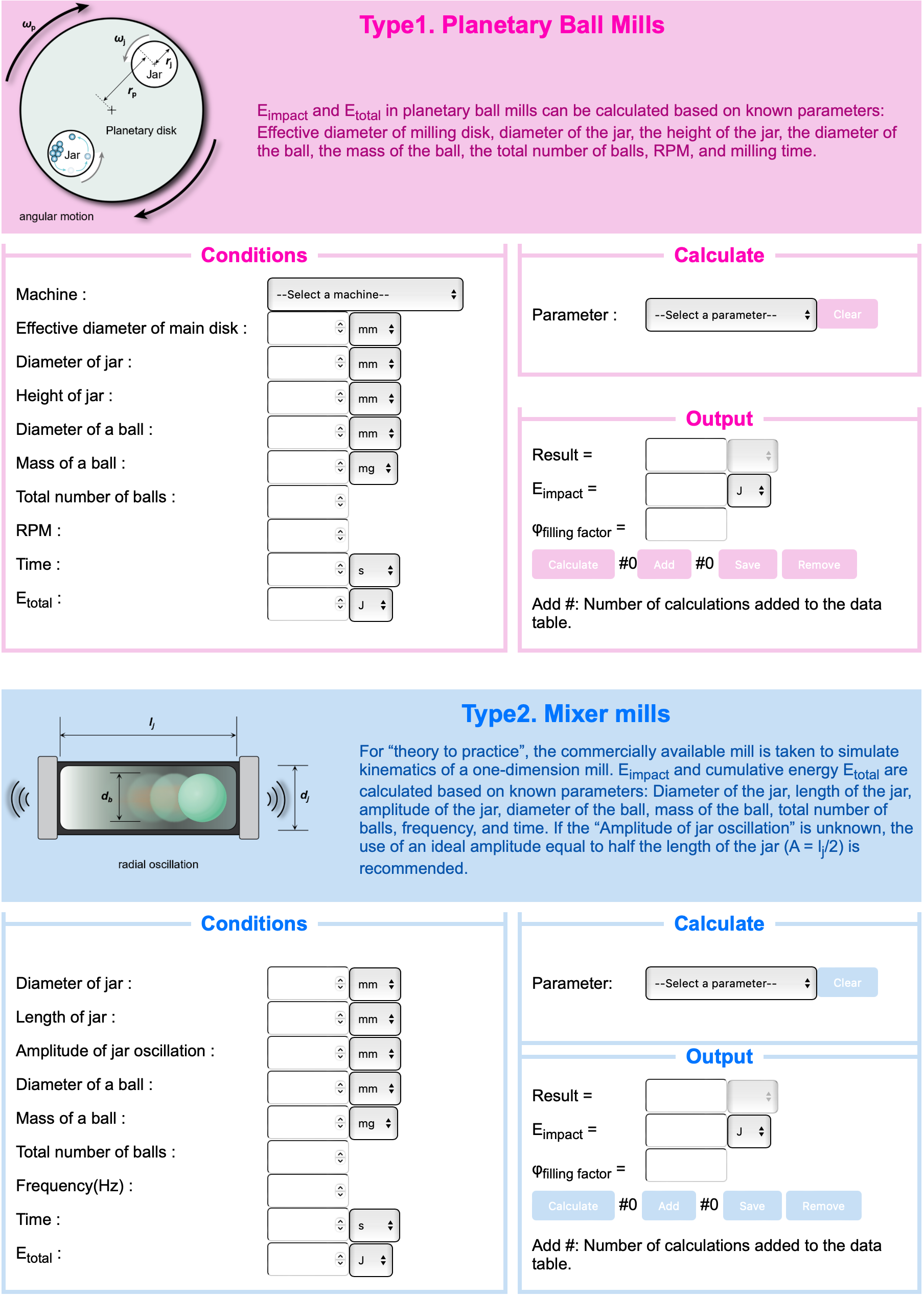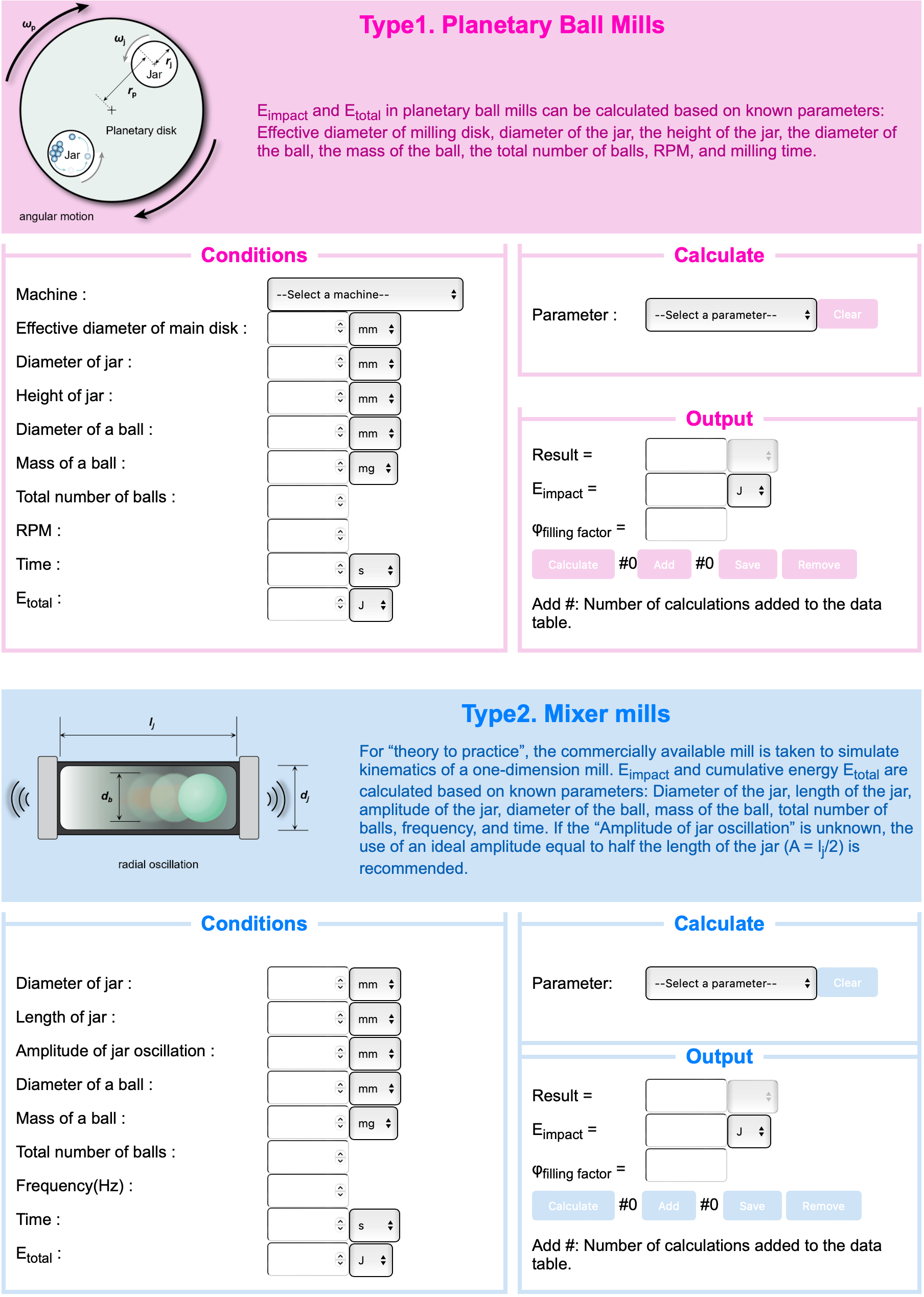 Our recent study, "Navigating Ball Mill Specifications for Theory-to-Practice Reproducibility in Mechanochemistry," tackles this critical issue by developing a straightforward yet powerful model for calculating impact and total energy in planetary and mixer mills. We’ve also created a free online calculator, accessible here, with an easy to use graphical user interface (see Figure below) which allows researchers to quickly estimate these energy parameters based on their specific experimental setups. This tool is designed to bridge the gap between theoretical predictions and practical outcomes, thereby improving the reproducibility and predictability of mechanochemical reactions.