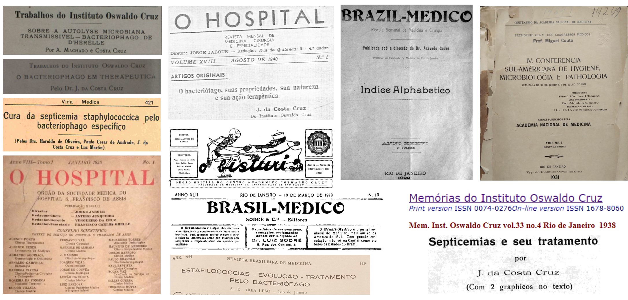 I started with the three recent publications that acknowledges phage therapy in early 20th century Brazil. From these I found a name (Dr José da Costa Cruz), a place (Oswaldo Cruz Institute in Rio de Janeiro) and events (failed clinical cases in 1921 to mass production of phages in 1924). My next step was to retrieve Dr Cruz obituary, where I found his publication list (Figure 1).