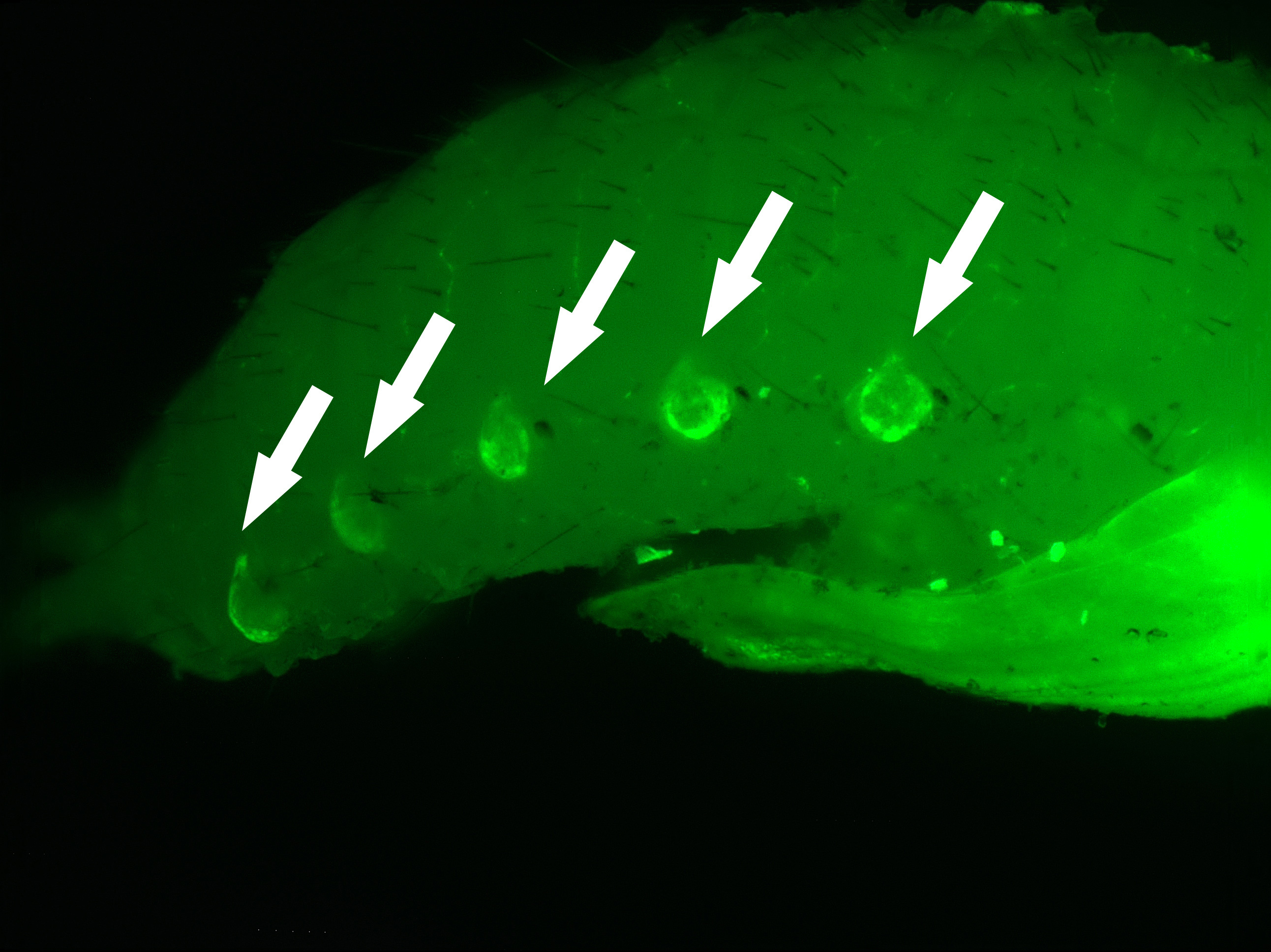 These glowing “blobs” of cells throughout the abdomen were, confusingly, little pockets of wing tissue where they shouldn’t be. I must say, the lens of hindsight is always clear, but at the time we didn’t realize it would take another year of thinking and experimentation before these data started to tell a story.
