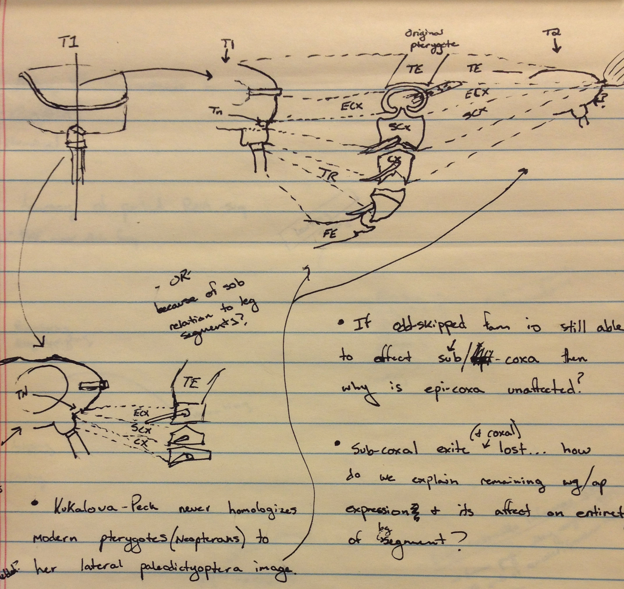 My scratch notes from circa 2013, thinking about insect wing origin and creating more questions than answers.