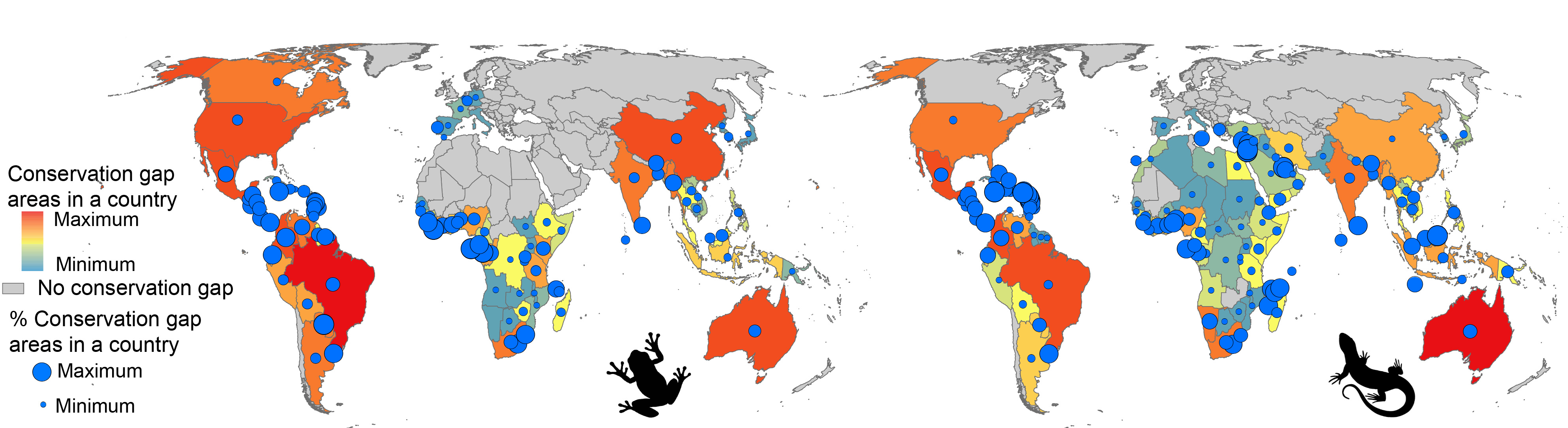 To fill the existing gaps, we provided a comprehensive, global assessment of the effectiveness of Protected Areas (PAs) in conserving reptiles and amphibians currently and in the face of future climate change over the course of the ongoing century. We compiled a comprehensive global database with observation records of amphibian and reptile species from different resources (e.g. online databases, fieldwork data, museum collections, and published references). We used species distribution models (SDMs), an approach widely used to quantify the responses of species under climate change to derive the distribution ranges and used climatic variables representing current and future climate conditions to estimate the distribution of these groups. The increasing availability of datasets and environmental factors allows the development of robust predictions on how change ranges will be affected by environmental change. Our study is a global cooperation that includes 38 co -authors from 5 continents.