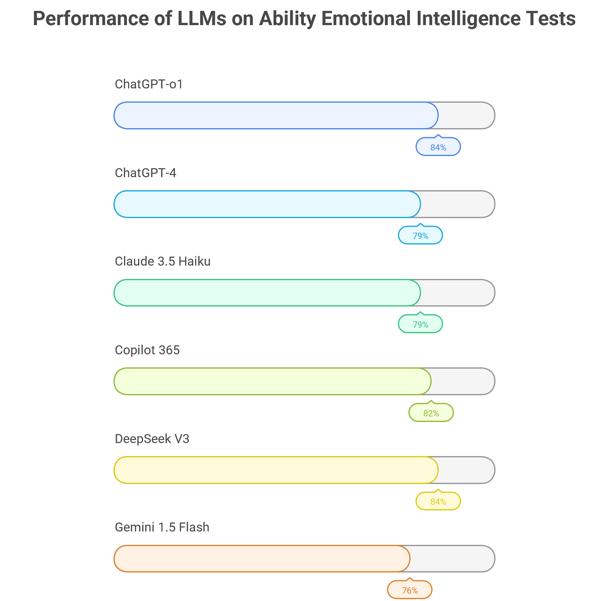 However, to be effective in emotionally demanding situations—offering appropriate advice or drawing accurate conclusions—LLMs must also demonstrate a deep understanding of emotions: their causes, expressions, and regulation. Without this foundation, their usefulness in emotionally intelligent applications may be limited. Since these components closely align with what we, as researchers of human emotional intelligence, define as ability EI (Mortillaro & Schlegel, 2023), our central question in this study was: