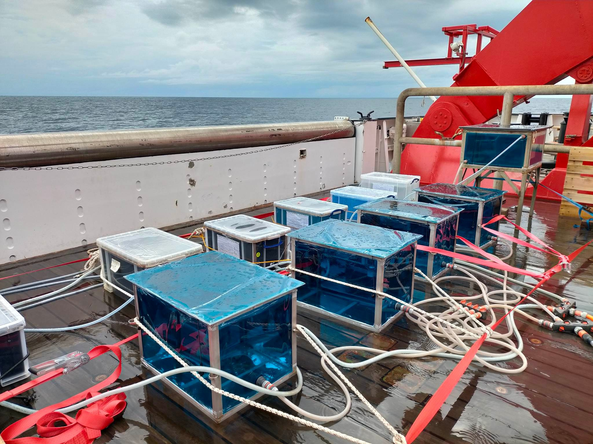 (On-deck incubations underway during a research cruise aboard the RV Sonne.)