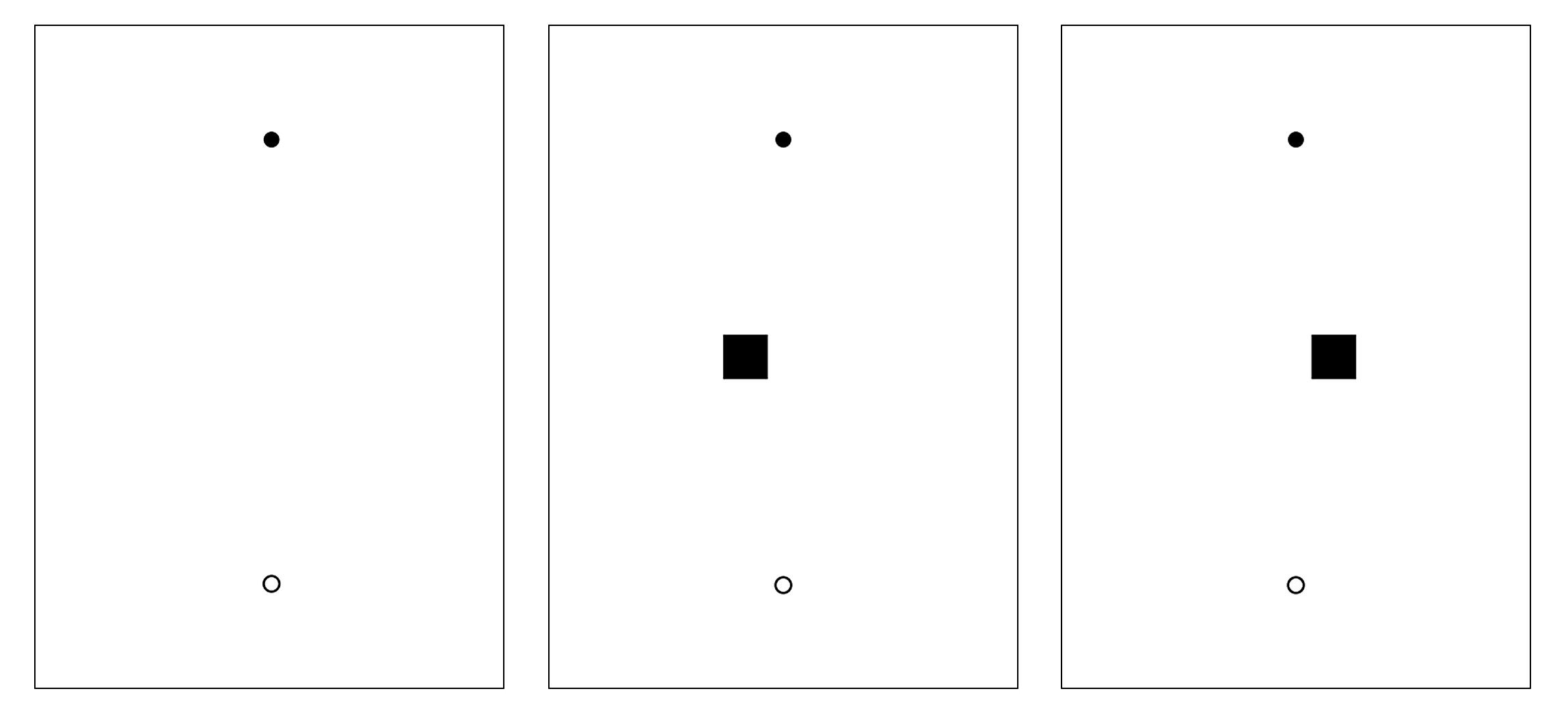 Participants used an electronic stylus to point from a starting dot to a target dot on a digitizer. In certain conditions, a distracting shape (the “flanker”) was presented at varying distances partway along their movement. Each participant completed two blocks of trials: one with the right hand (where the flanker, if present, was on the left) and one with the left hand (where the flanker, if present, was on the right). Participants were instructed to avoid “touching” the flanker during their movement.