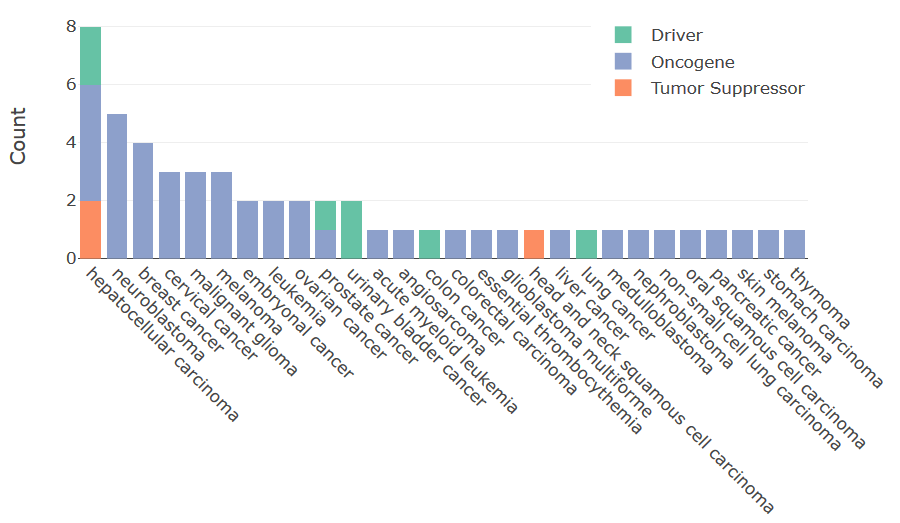 Figure 1. The data can give an overview of the important cancers associated with each gene (above is TERT) or the importance of each gene in a cancer type.