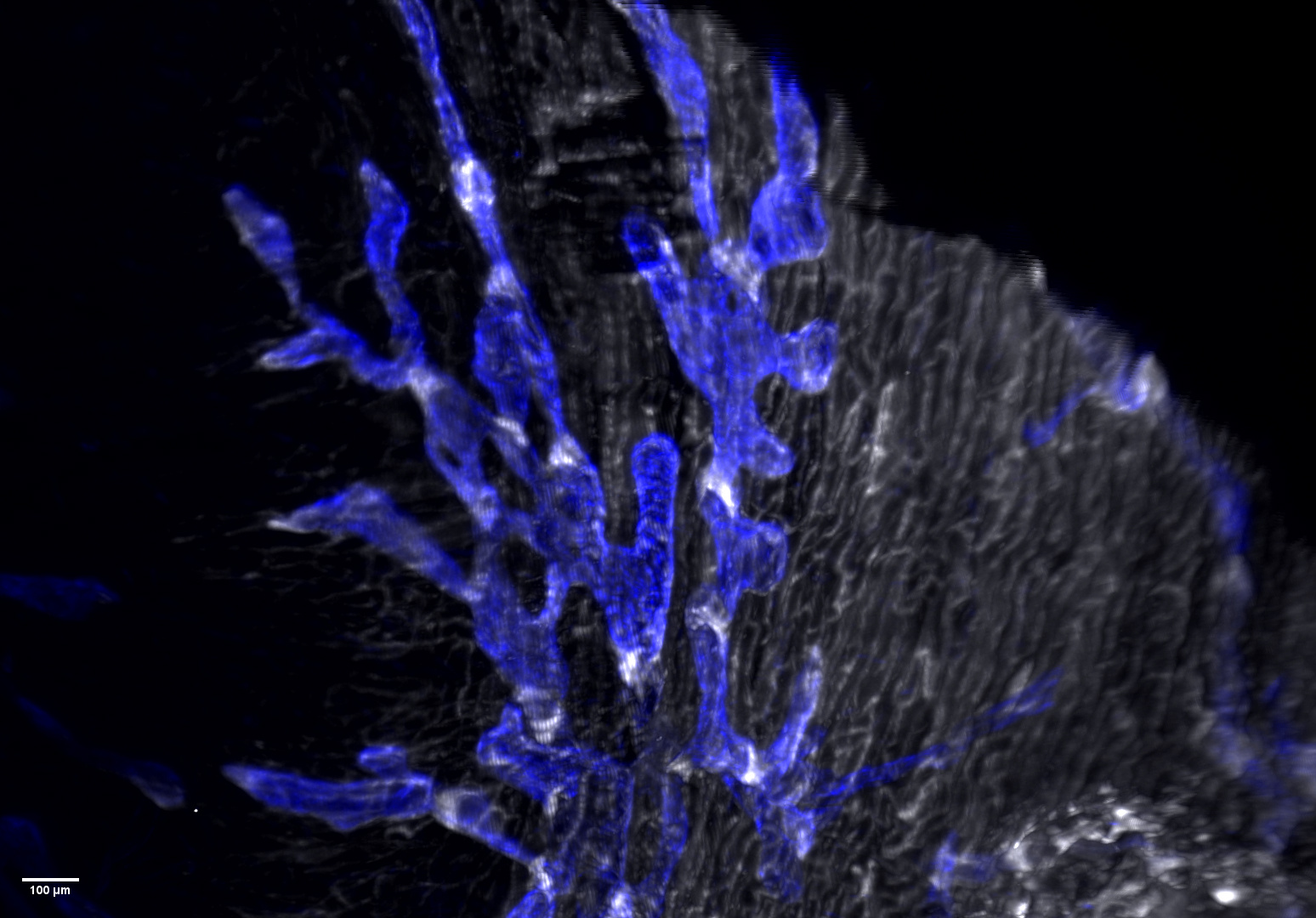 Further analysis revealed striking alterations in LEC subpopulations. One cluster, corresponding to lymphatic valve cells (see beneath), was markedly diminished in diseased hearts. Using lightsheet 3D imaging, we confirmed a loss of valves within cardiac lymphatic capillaries during myocardial inflammation.