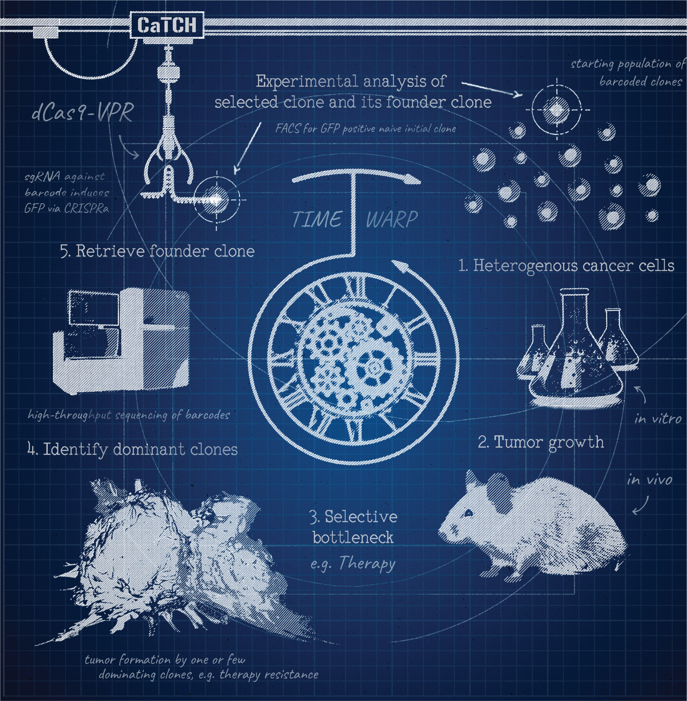 The system, which we termed CaTCH (CRIPSRa tracing of clones in heterogeneous cell populations), performed very well in carefully controlled tests. Thus, we soon proceeded to challenge its applicability in a resistance selection experiment in vivo to tackle our initial question of how resistance develops. To our surprise we found that even though resistant tumors consisted of only a handful of clones (from initially tens of thousands!), none of the treatment-naïve founder clones was fully resistant and seemingly all clones within the treatment-naïve starting population had the potential to become resistant. We further could attribute this to the de novo generation of resistance-causing mutations in certain clones, challenging the common notion of pre-existing resistance-mutations. We are very curious to follow up on these findings in future studies.