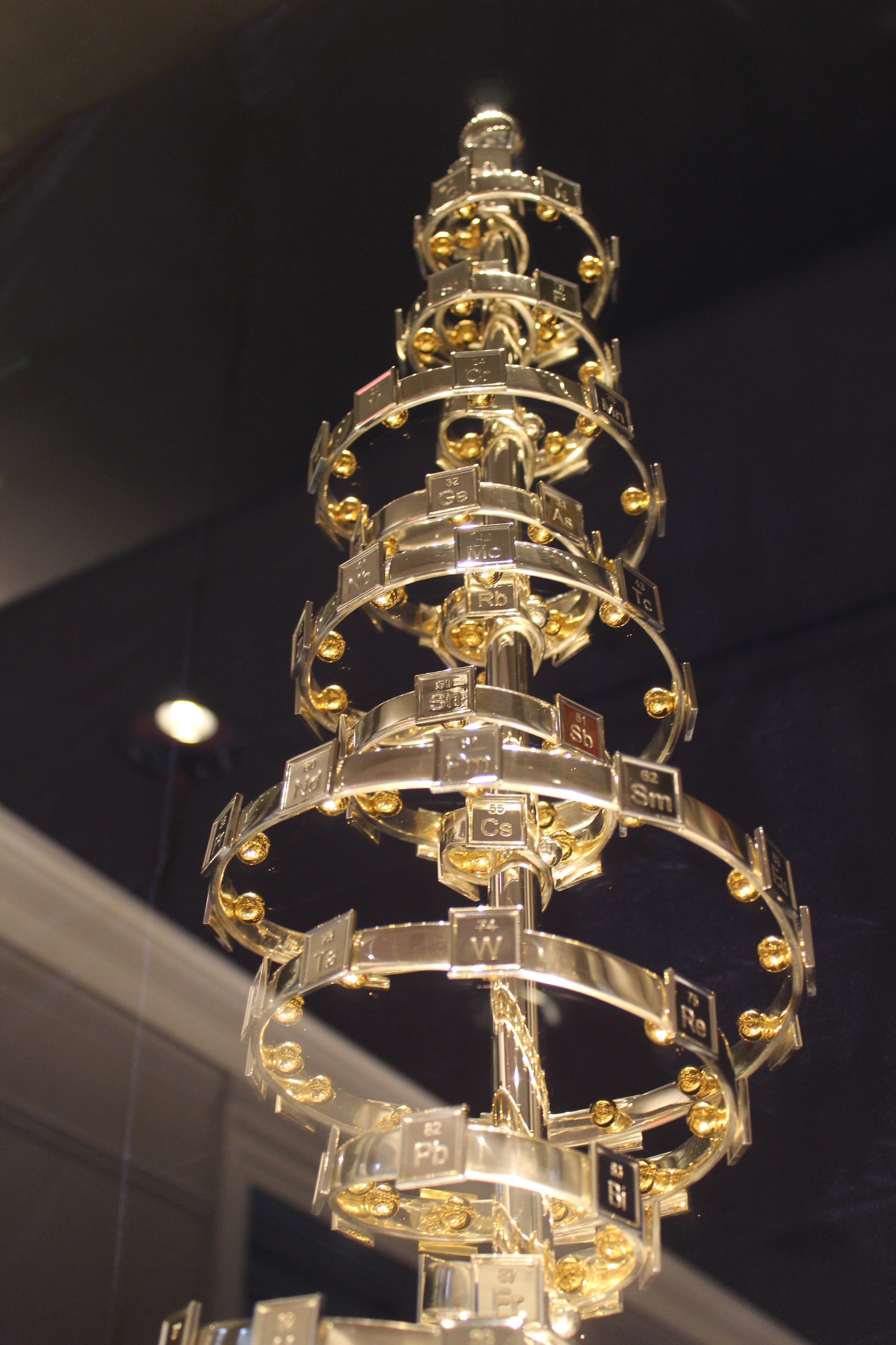 The exhibition ends with unique pieces of art specially created to mark this important anniversary: a spiral sculpture based on Schaltenbrand's 1920 helical version of the periodic table and a macramé version containing more than 180,000 knots.