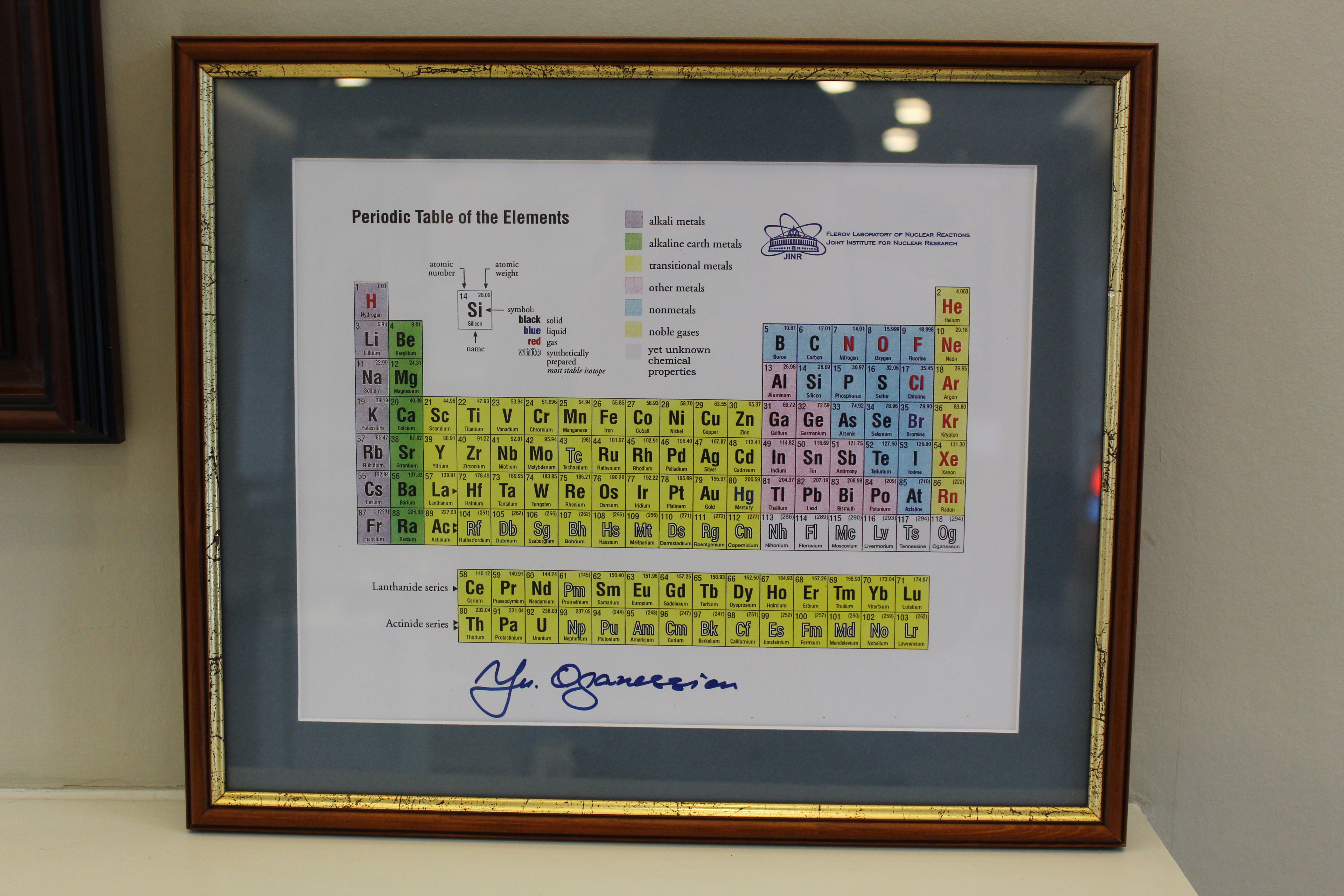 Other treasure items include a current version of the Mendeleev's periodic table signed by Professor Yuri Oganessian (who is the only living person with an element named after him - oganesson) and Professor Glenn Seaborg (Nobel Prize in Chemistry in 1951 for discoveries in the chemistry of the first transuranium elements - a lead discoverer of 4 and co-discoverer of six elements).