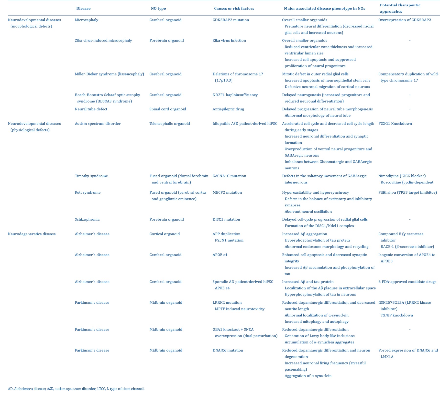 Table 1: The successful recapitulation of neurological diseases using neural organoids [Lee 2022].