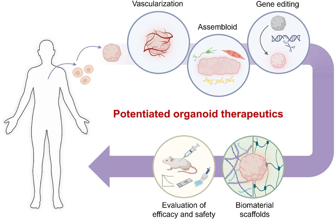 Figure 2: Bioengineering toolkits to potentiate organoid therapeutics. Credit: [Park 2024].