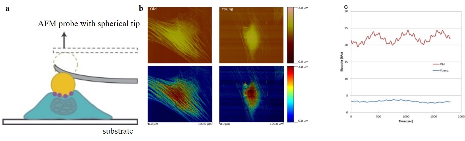 cell cytoskeleton of old vs. young cells (Figure 3b)25. Of note, VSMC stiffness was further observed to be a dynamic property