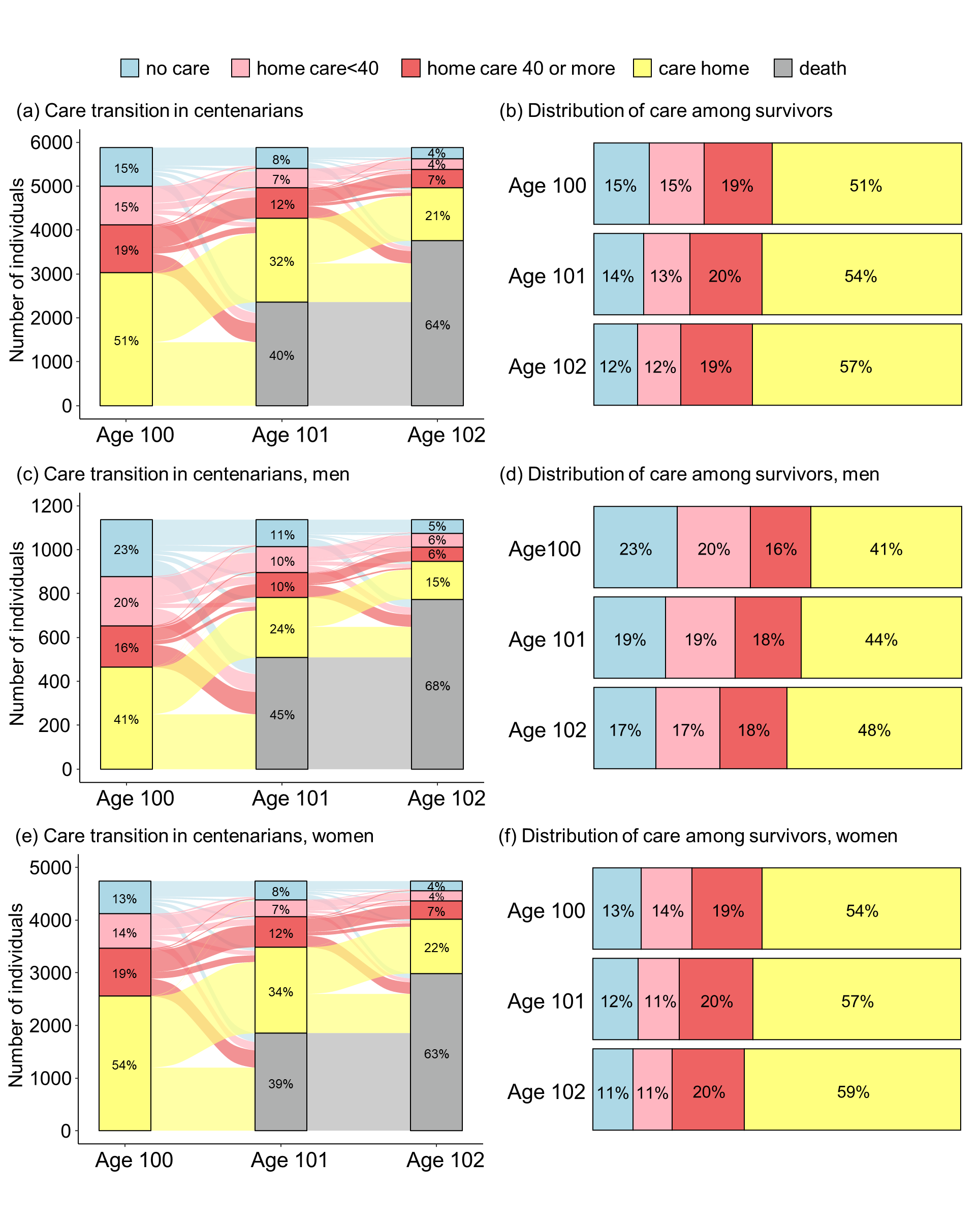 - Care Needs: Two years later, only 4% continued to live at home without formal care, while 64% had passed away.