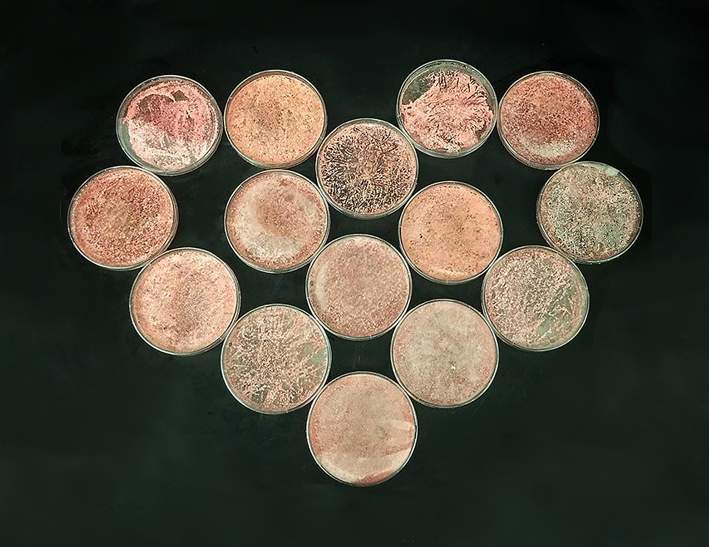 The Streptomyces spectabilis NRRL 2792 strain that produces detoxins N1-3 shows a beautiful pink color in the lab, as it also produces prodiginins. Picture credit: Michael Mullowney.