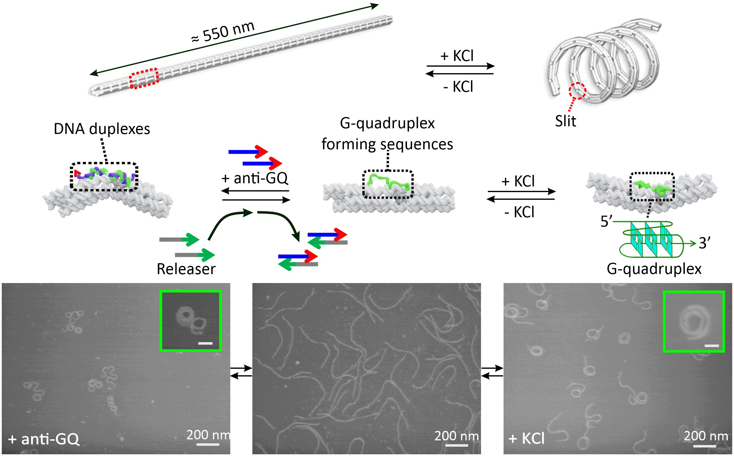 Figure 2. Reversible transformation of K+ and DNA responsive nanosprings.