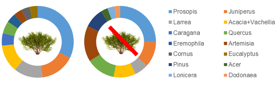 The importance of woody cover and woody plant traits was further explored using modelling approaches, and revealed that woody cover, and plants that were deciduous or had the ability to resprout, were the most important determinants of the effectiveness of removal on animal diversity. However, the type of removal treatment (e.g., physical, chemical or multiple removal methods) and time since treatment were the major determinants of the effectiveness of removal on woody and herbaceous cover.