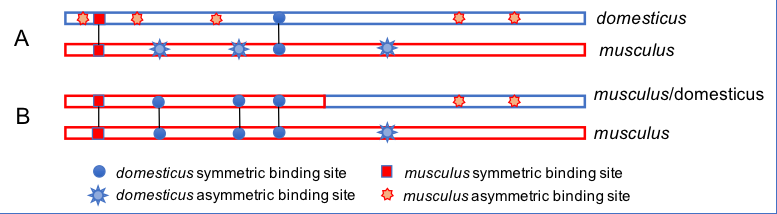 However, there are dozens of ways how to interfere with meiotic pairing and synapsis to cause sterility. In our eLife paper we designed genetic experiments deliberately reducing the PRDM9 asymmetry on selected chromosomes and asked ourselves whether meiotic synapsis and, consequently, male fertility can be rescued in such a way. We utilized inter-subspecific chromosome substitution mouse strains to prepare hybrid mice in which a pair of chromosomes of one subspecies was substituted by the corresponding pair from the other subspecies. This generated hybrids with stretches of DNA that came entirely from a single subspecies, as shown in Figure 2.