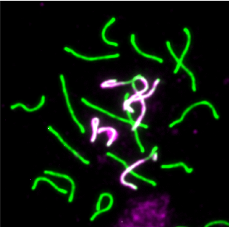 These stretches by definition have only symmetric DSB hotspots, and by measuring the length of those that did or did not rescue synapsis we could estimate that stretches of 27 million or more DNA base pairs, located in any part of a chromosome, were sufficient to fully rescue synapsis of a given chromosome. Even more than that, when the synapsis was restored in the four chromosomes that were most strongly affected by asynapsis, the hybrid male sterility was reversed.