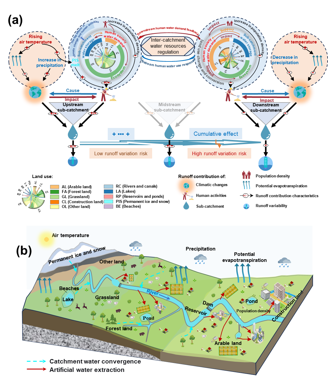 Rivers serve as critical channels for transporting water resources between upstream and downstream regions. Changes in downstream runoff are closely linked to climate change and human activities upstream. However, through literature review, we found that the contributions of climate change and human activities to runoff variation have been examined in multiple individual basins, but the upstream-downstream cross-regional interaction relationships remain underexplored.