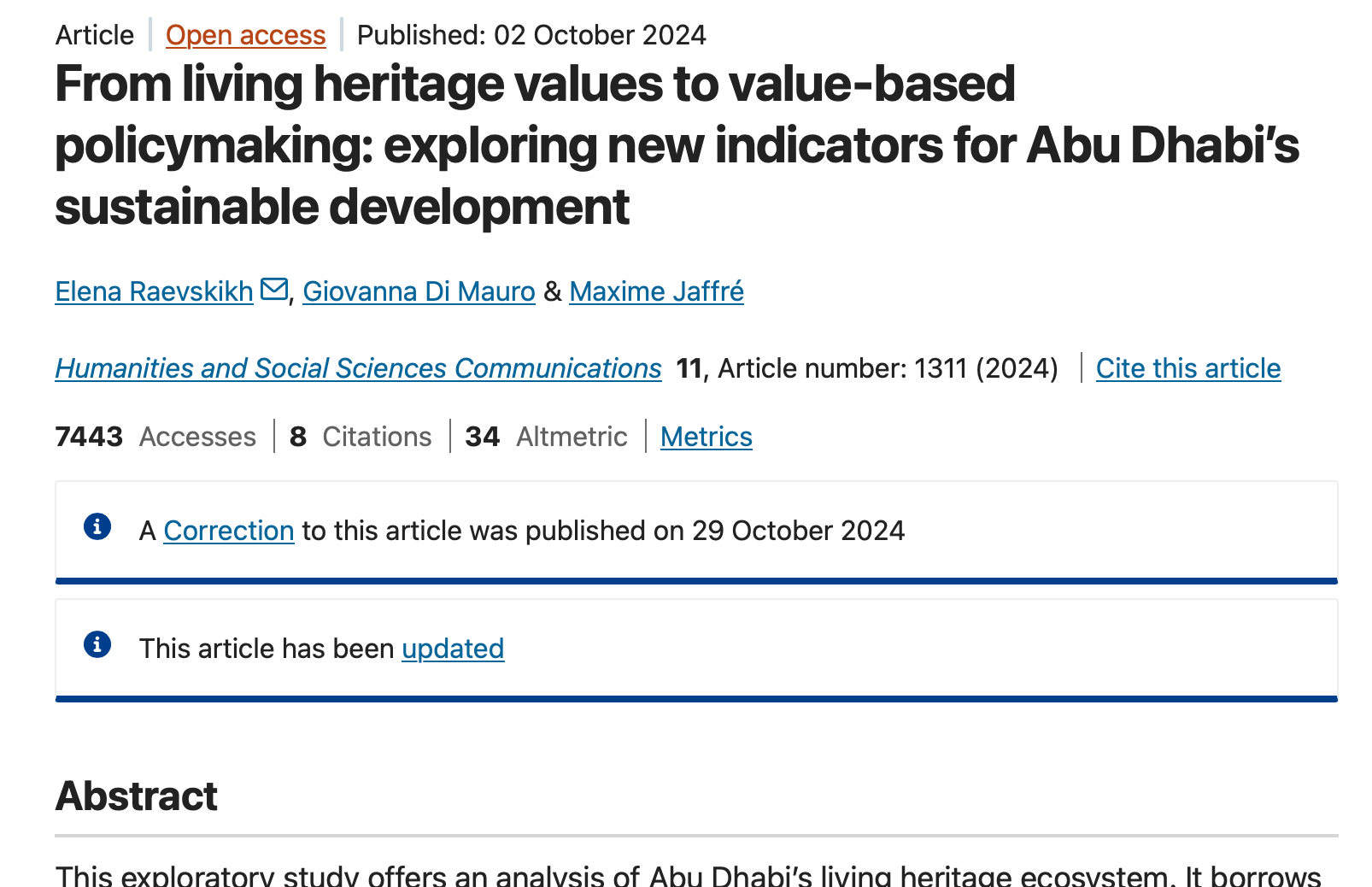 From living heritage values to value-based policymaking: exploring new indicators for Abu Dhabi’s sustainable development: https://www.nature.com/articles/s41599-024-03841-5