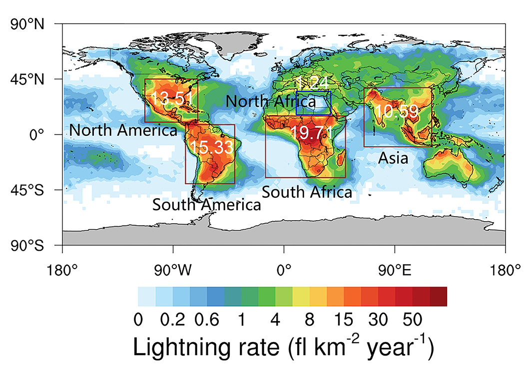 Uncovering the lightning mystery. On 9 August, 2021, our paper entitled “Cloud ice fraction governs lightning rate at a global scale (https://www.nature.com/articles/s43247-021-00233-4)” was published in Communications Earth and Environment. In this work, we analyzed 20 years ( during 1995-2014) of satellite-derived LIS/OTD lightning flash rate data and cloud water data from the ERA-Interim reanalysis above continental and ocean regions at a global scale (Fig.1). A robust relationship has been found between cloud and lightning. For the first time, we proposed to parameterize this relationship with a novel universal modified gamma function, which works well on both global and regional scales (for detail to see the paper).