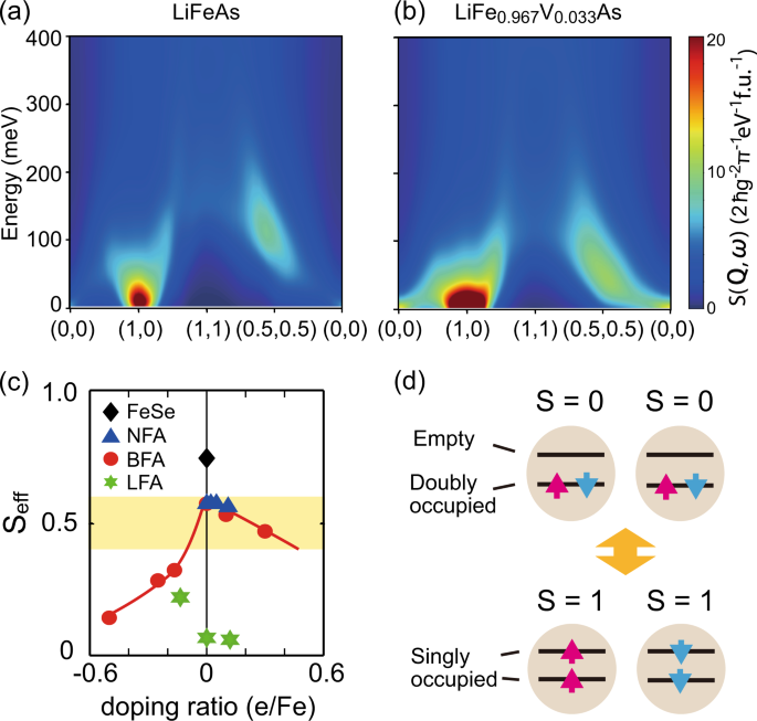 Among Fe-basd superconductors, LiFeAs responds distinctively different upon chemical doping. Partial replacement of Fe by a small amount of V can quickly eliminate superconductivity. For example, there is no evidence for superconductivity in LiFe0.955V0.045As. Through neutron scattering measurements, the authors find that transverse incommensurate spin excitations seen in superconducting LiFeAs transforms into longitudinally elongated ones in LiFe0.955V0.045As with dramatically enhanced magnetic scattering. Combined with density functional theory and dynamic mean field theory calculations, the observed magnetic behavior can be understood in terms of enhanced electron-hole nesting due to enlarged hole brand by V doping. In addition, V doping enhances inter-orbital scattering, disfavor of superconductivity. (Courtesy of Professor Rongying Jin, Associate Editor of npj Quantum Materials)