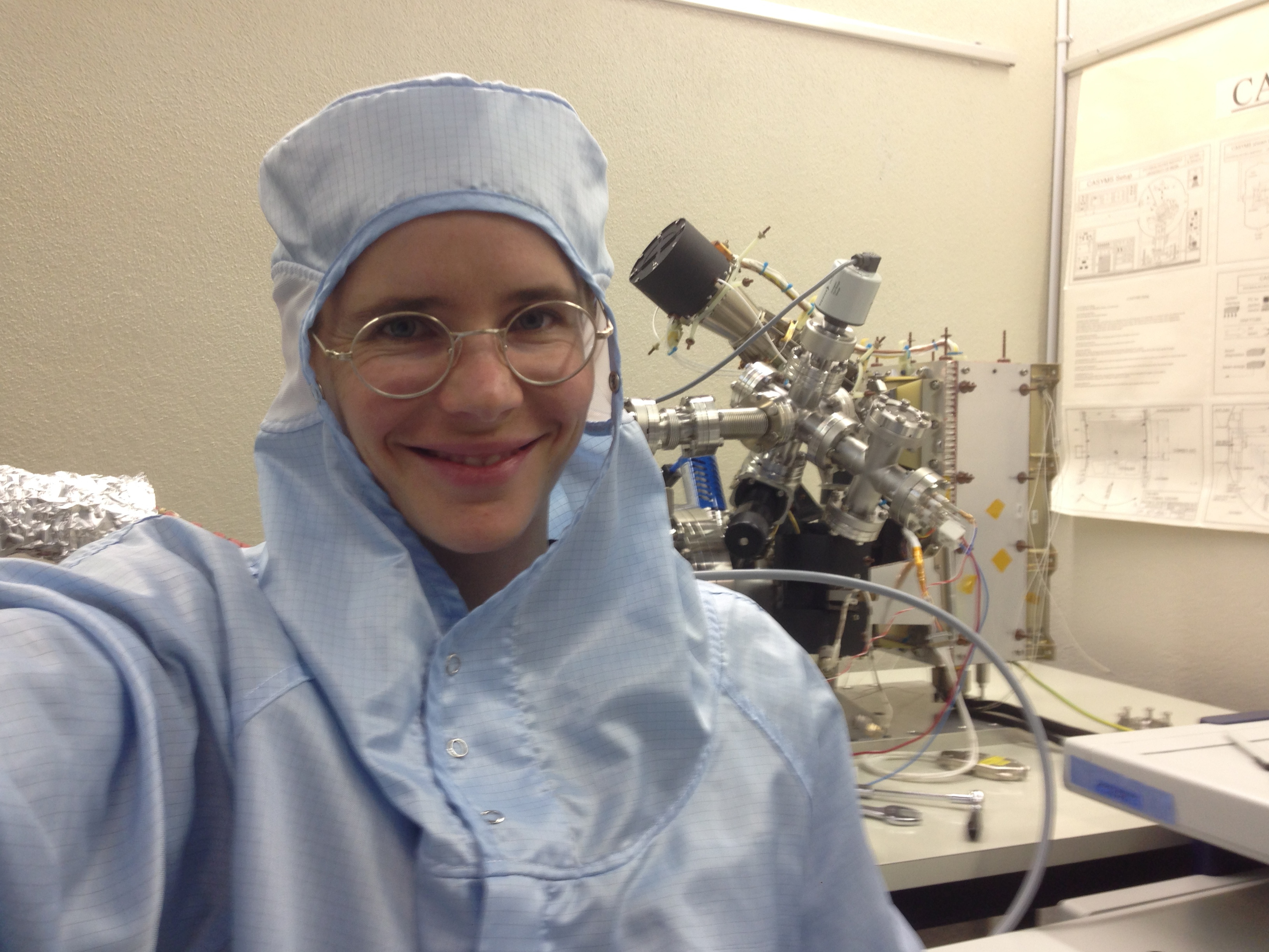 Nora Hänni, our chemist, with the ROSINA flight spare instrument in the Background.