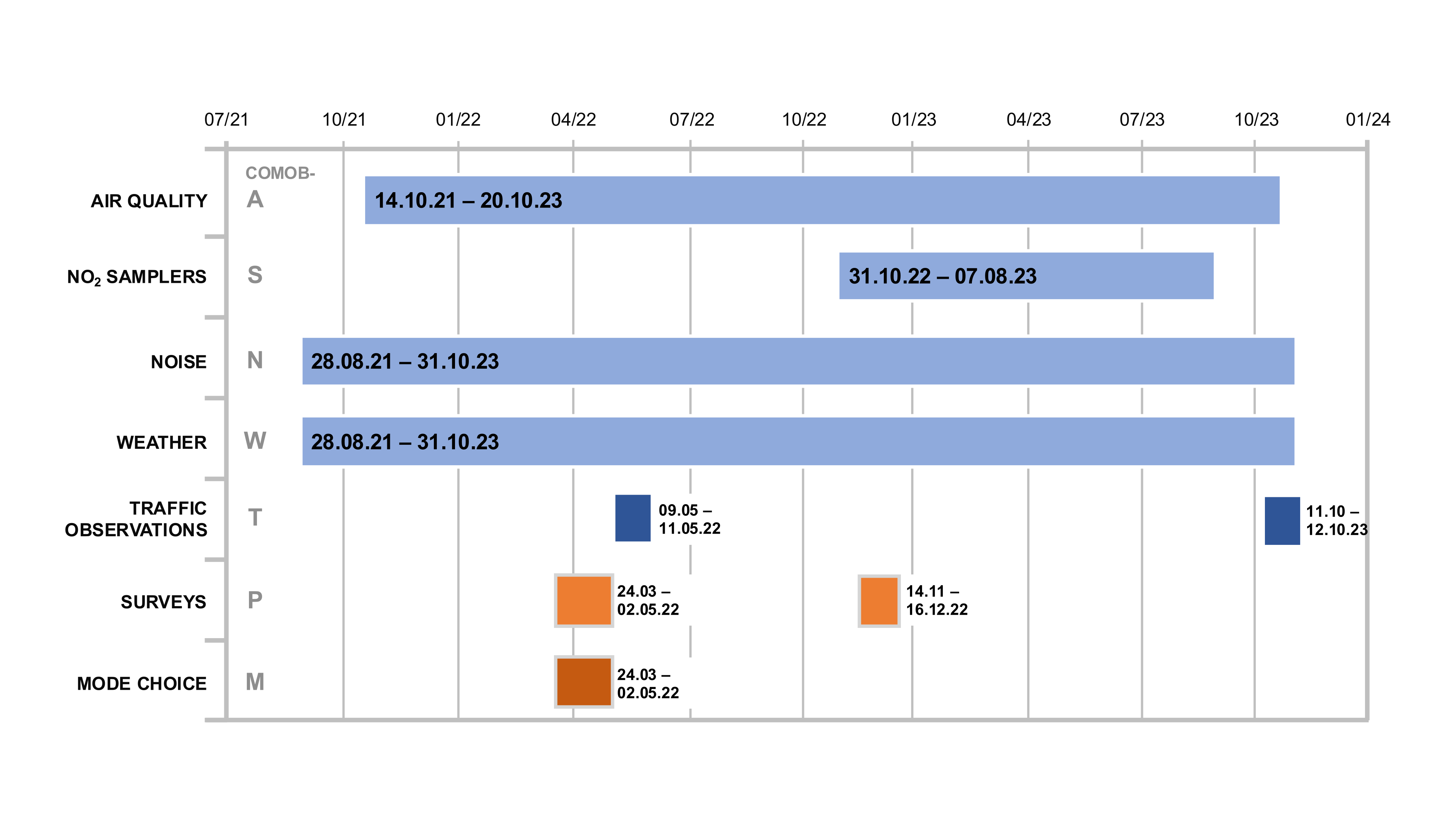 - explore differences in school commutes (COMOB-P) and air quality (COMOB-A, S, N) in one Central European country's capitol with other cities over the world