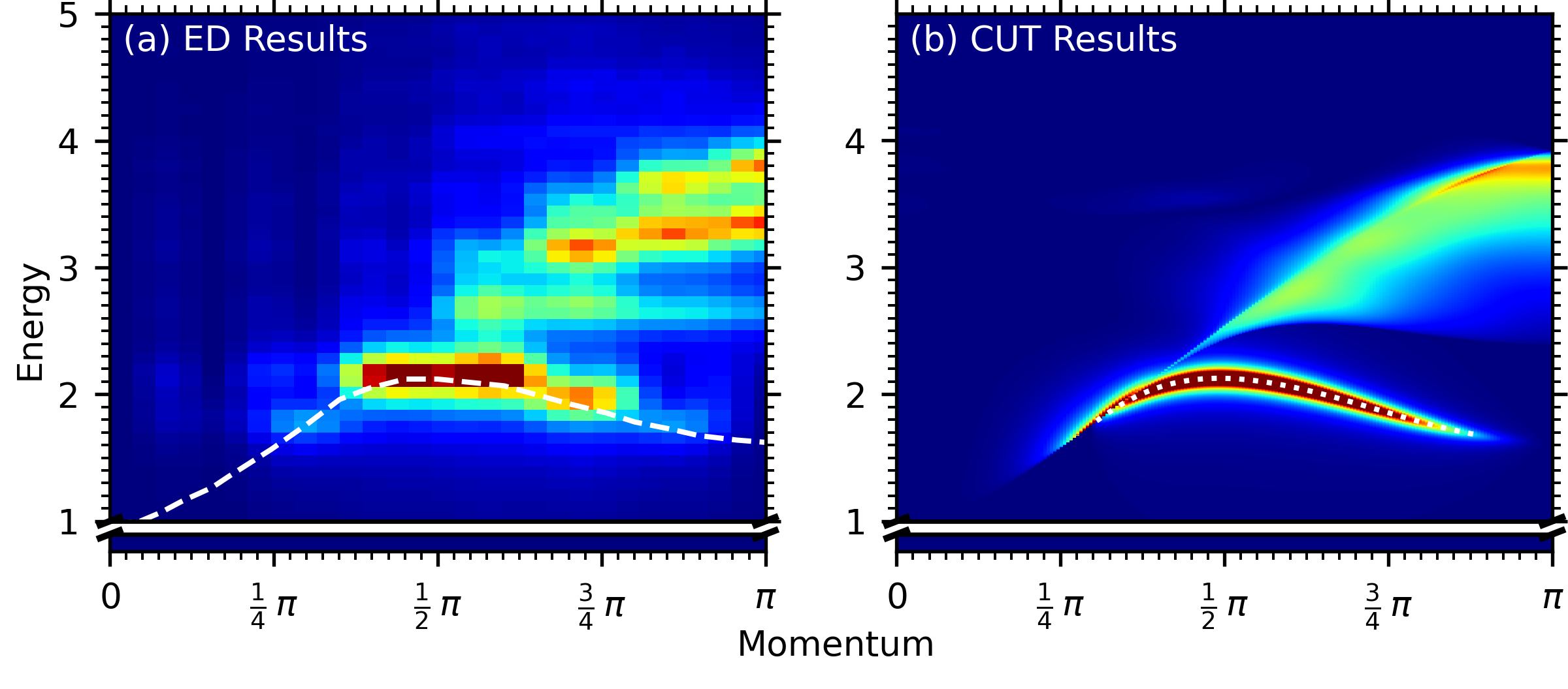 - The computed Hamiltonian is described in the thermodynamic limit. The only methodical approximation is the truncation of the least relevant terms in the CUT and the Lanczos algorithm. Therefore, the resolution in energy and momentum can be increased indefinitely for the computed response functions – you can zoom in as close as you want!