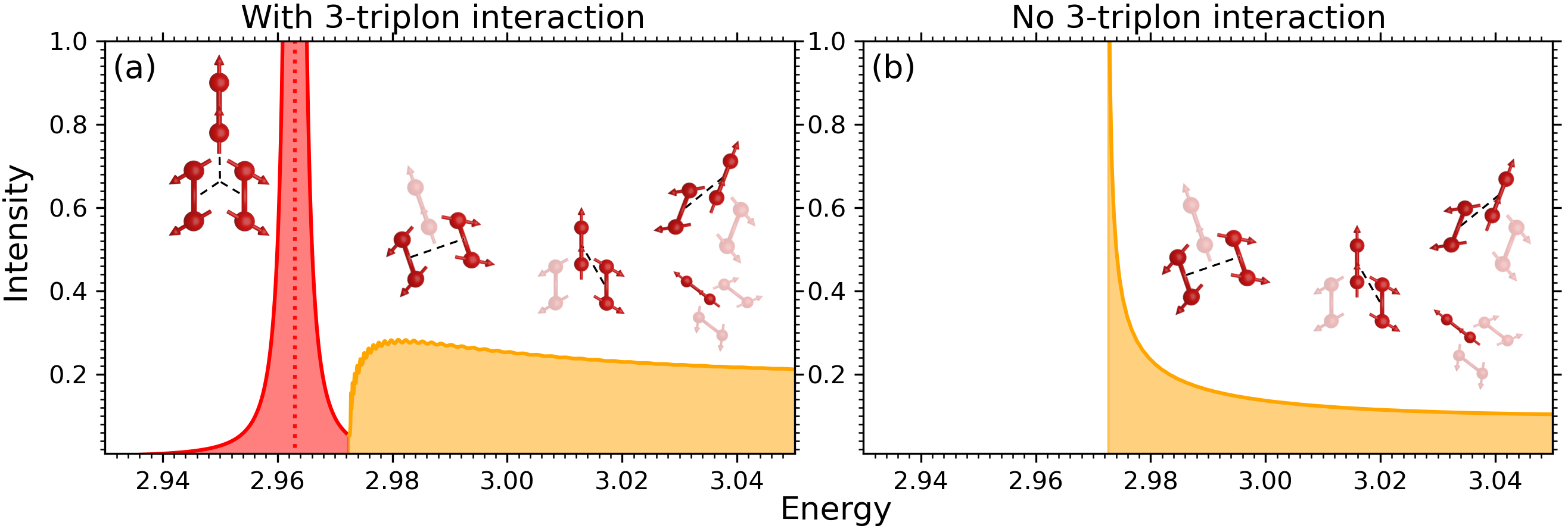 We applied the CUT method to compute the scattering intensity of resonant inelastic X-ray scattering (RIXS) on antiferromagnetic spin ladders, relevant for cuprates. RIXS at the Cu L3-edge of cuprates is known to have a spin-conserving and non-spin-conserving channel. In the past, CUT has been applied extensively to inelastic neutron scattering, which is restricted to the non-spin-conserving channel. Details concerning the model and the observables can be found in our paper. When analyzing our computed RIXS responses in the spin-conserving channel, we found three-body bound states. Out of curiosity, we turned off all three-triplon interactions to investigate how they affect the bound state. Surprisingly, the bound state disappeared completely, implying that genuine three-body interactions are necessary for the formation of the three-body bound state, see Fig. 3. To our knowledge, this is novel behavior, since normally two-body interactions alone are responsible for forming many-bound states in nature: atoms, molecules and solid states are formed solely due to two-body interactions, i.e. the Coulomb interaction. Not so for our spin-ladder system. Indeed, the emergence of the three-body bound state in the spin ladder is a smoking gun feature of irreducible three-body interactions, which became the main message of our paper.