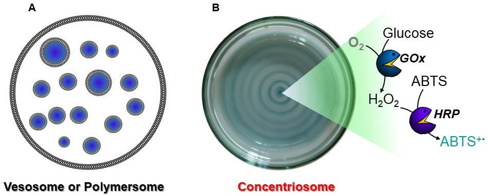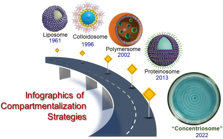 In principle, the “Concentriosome” developed by us is similar to polymersomes or vesosomes, a sphere-shaped artificial vesicles consisting of concentric series of multiple bilayers that are popular since mid-60s.[5] Although currently there is no loading and delivery of guests is not shown with “Concentriosome”, at this time the team believes, this is entirely a brand new method in the areas of compartmentalization strategies over the last 60 years of development (Figure 3). Moreover, this may provide a reliable strategy for regiospecefic control over chemical processes within a predictable position in a solution. This will have considerable implications in several interdisciplinary areas including tissue engineering.