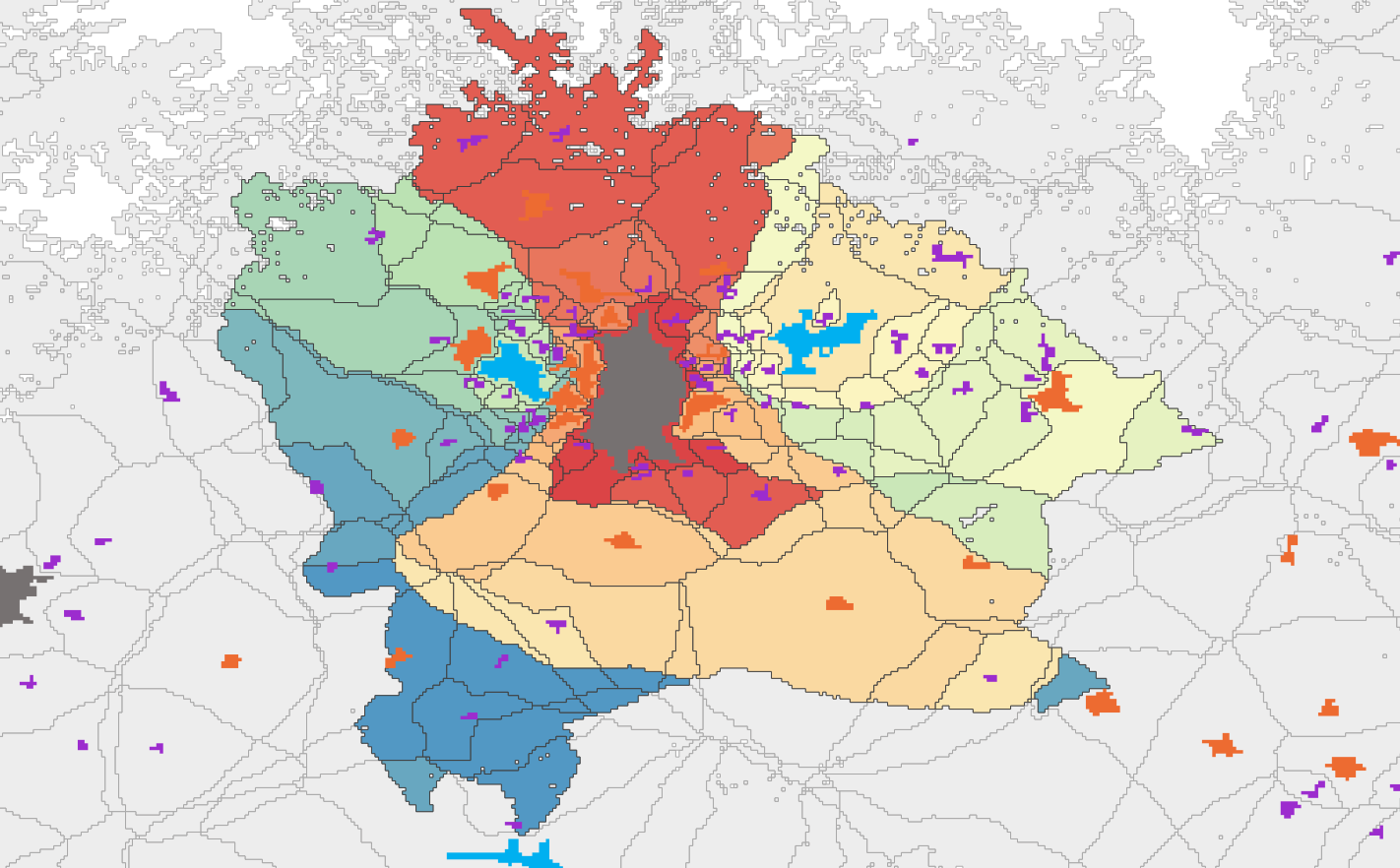 The final challenge was how to organize all the information being processed. The 219 million locations had to be aggregated into ‘patches’ describing locations served by the same set of urban centres. The last step was then delineating city–regions by assembling the over 100,000 patches we obtained, which was akin to completing a gigantic puzzle. In the end, we've expanded Charles J. Galpin's 1915 insights from a small survey in Walworth County, Wisconsin, to a comprehensive global scale. We invite readers to explore this dataset [8] that can be used for regional planning, natural resource management, and developing sustainable city–regions globally.
