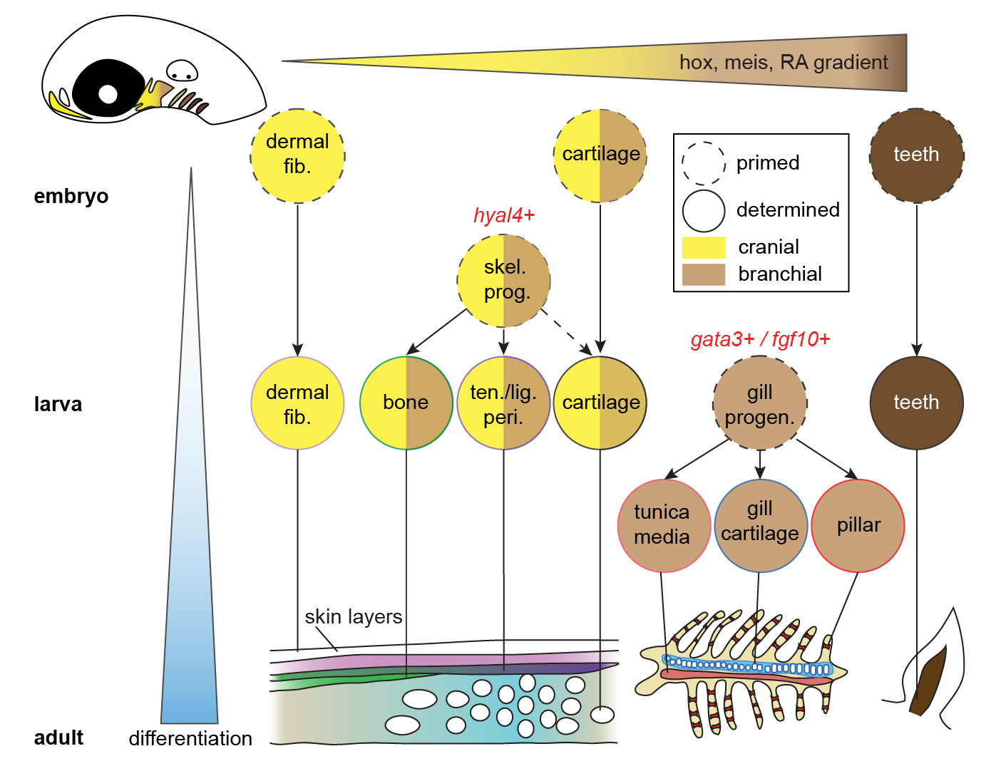 Our study has provided a better understanding of the variety of cranial neural crest cell lineages. We showed the progressive emergence of region-specific cell fate competencies and created a list of potential regulators, including the GATA factors that are linked to the gill-specific respiratory program. These discoveries provide significant insights and resources for the neural crest cells community. In addition, Constellation analysis can serve as a broadly useful tool to advance the understanding of cell fate decisions during development as well as regeneration.