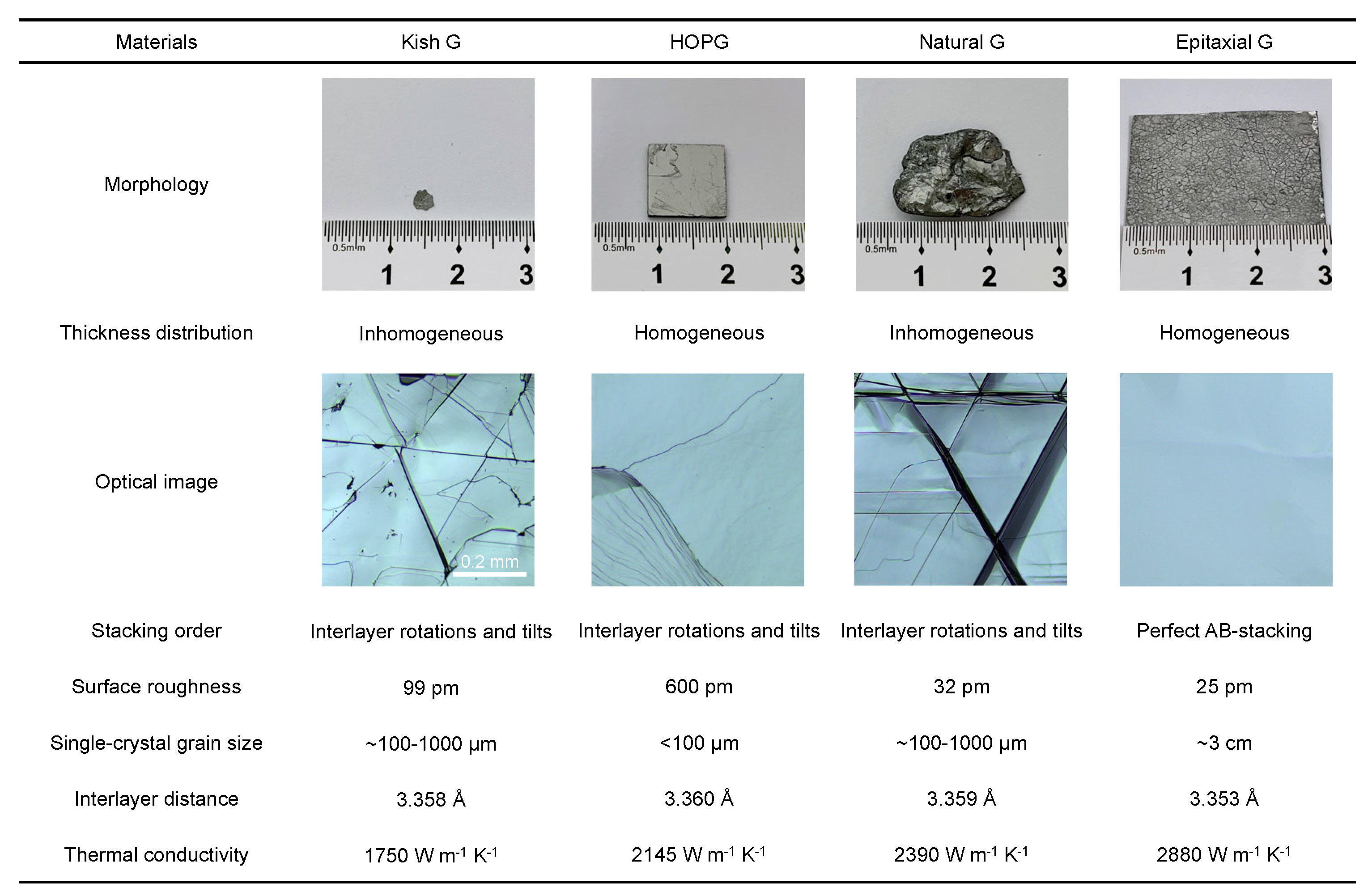 Table 1 | Comparison of different kinds of graphite. Note: ‘EG’ is the epitaxial single-crystal graphite obtained in this work.