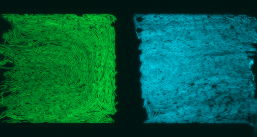 Trapped and communicating in a microfluidic device. Two populations of E.coli separated by a membrane are able to communicate but not mix (photo credit Chris Jonkergouw and Ekaterina Osmekhina)