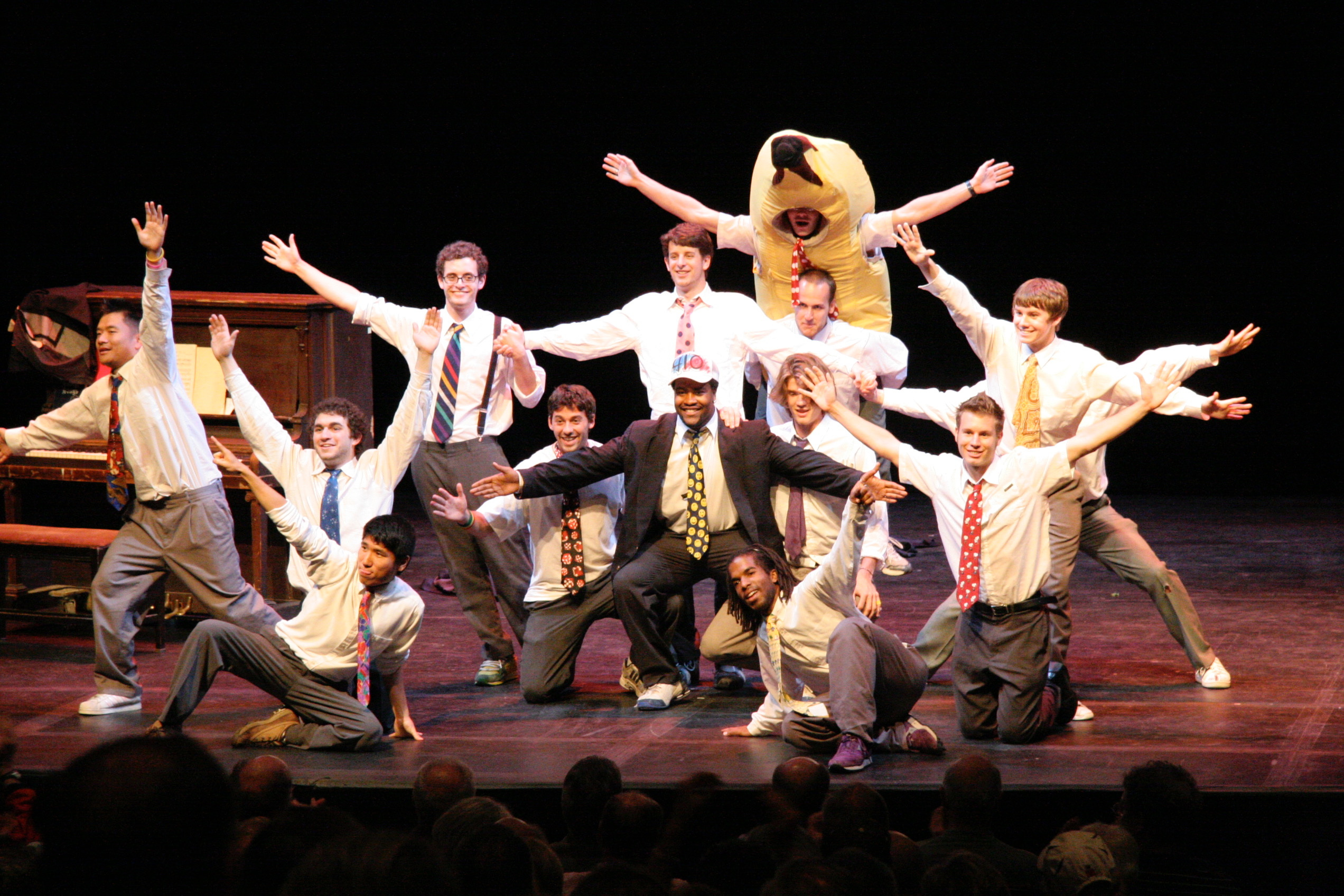 Me (with pink tie) performing with the Amherst College Zumbyes in 2007, a few months before placing third in the International Championship of Collegiate A Cappella.