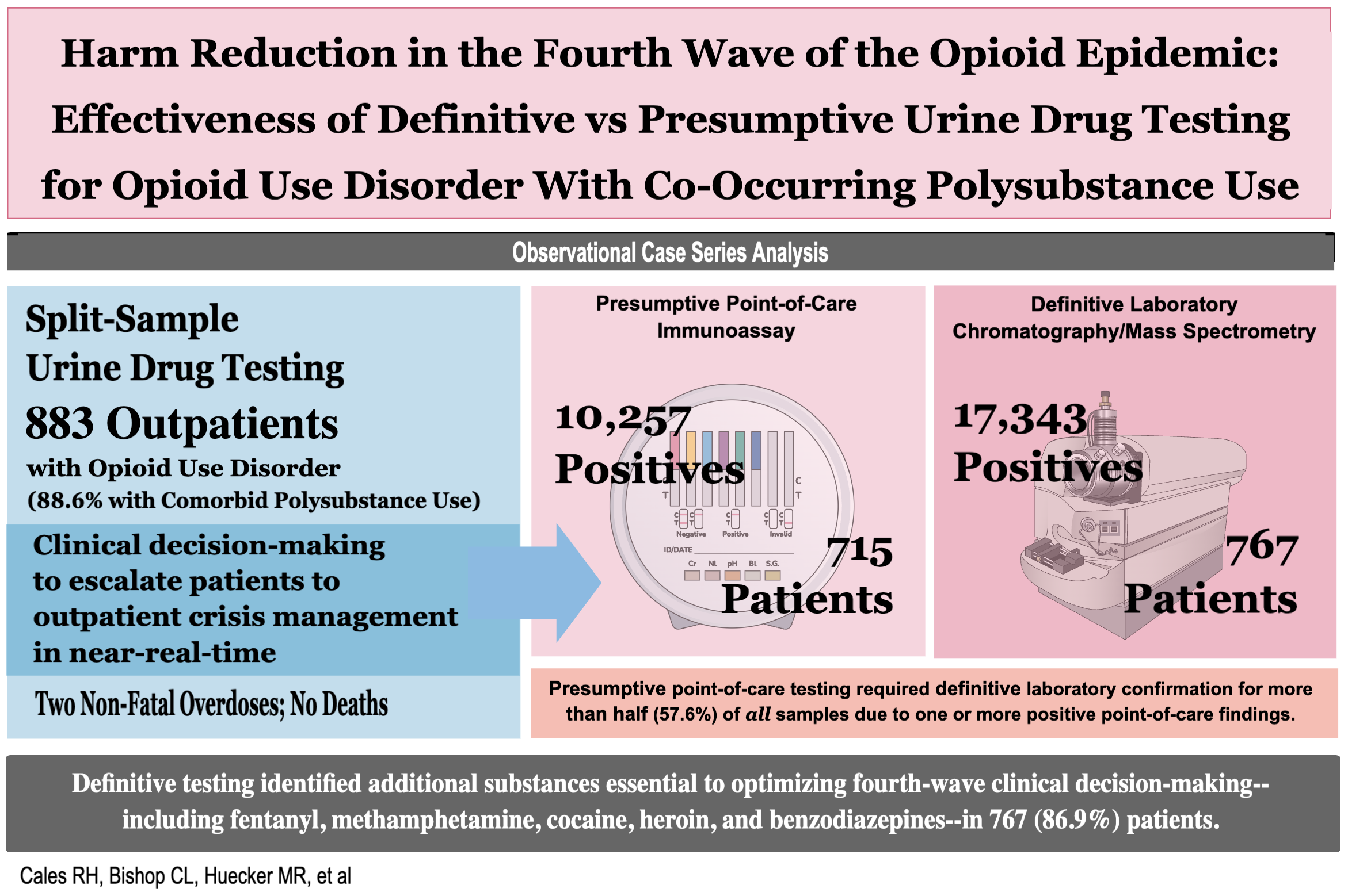 - Cales RH, Bishop CL, Huecker MR, et al. Harm reduction in the fourth wave of the opioid epidemic: A case series investigation of the effectiveness of definitive vs presumptive urine drug testing for opioid use disorder with co-occurring polysubstance use. Harm Reduct J. 22, 187 (2025). https://doi.org/10.1186/s12954-025-01335-4