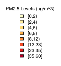 In summer 2020, we finished up the prediction data sets and generated the plots and tables for our paper. Here is a map of our predicted PM2.5 concentrations by county, averaged over the fall (September, October, November) of 2017. The fall of 2017 had some very large fires in California and the Pacific Northwest, which is evident in the higher PM2.5 concentrations in those areas.
