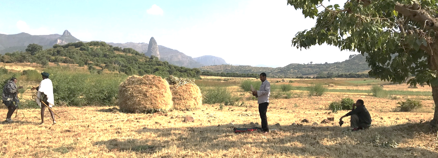 A typical smallholder farm in Amhara region, Ethiopia, showing a harvested crop of teff, a small-grained staple cereal crop (photo: Edward Joy)