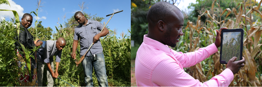 Colleagues from the Department of Agricultural Research Services, Malawi, sampling soils and data-logging in a farmer’s field in Central region, Malawi (photos: Rob Ounsworth)