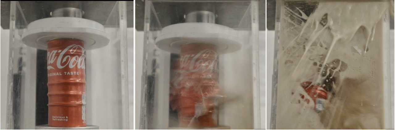 Most people have probably stepped on an empty aluminium can at some point. The result is dramatic but short-lived: the can suddenly buckles flattening into a pancake. But when we crushed a liquid-filled can in the laboratory, the behaviour was completely different. Instead of immediately collapsing, the can developed a single circular wrinkle on its surface. Then another appeared nearby. Then another. Gradually, the entire cylinder wrapped itself in evenly spaced rings, almost like the ridges of a concertina. Even more striking was how orderly the process looked. Each ring appeared sequentially, one after another, rather than all at once. The pattern seemed almost choreographed. In fact, a particularly creative interpretation of this process comes from the performer Smac McCreanor, whose dance piece inspired by hydraulic-press experiments humorously captures the dramatic tension and release of crushing objects. While our research did not involve choreography, watching the rings appear one by one does feel a little like watching a carefully timed performance.