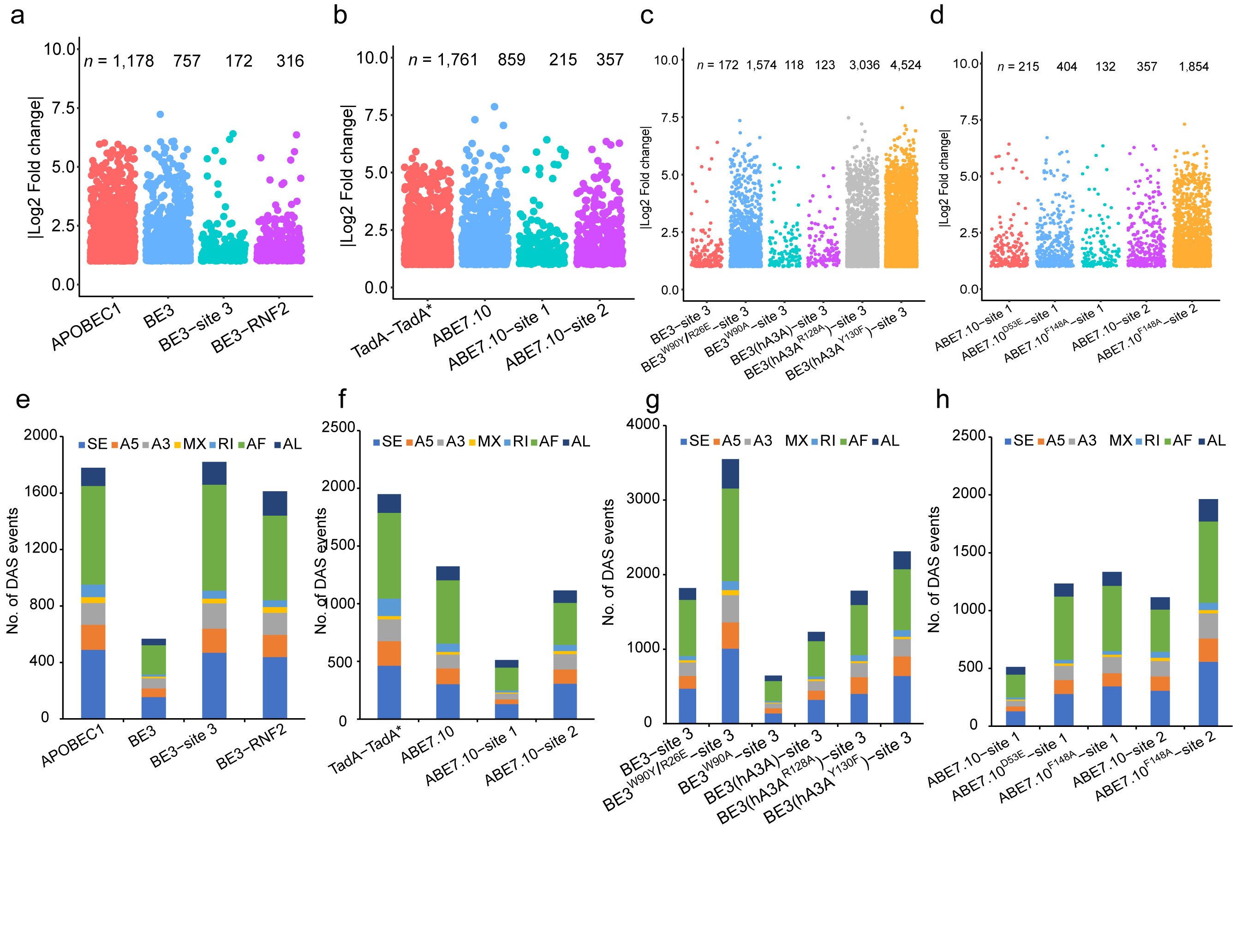 Figure 1. Identification and characterization of transcriptome-wide DEGs and DASs induced by DNA base editors.